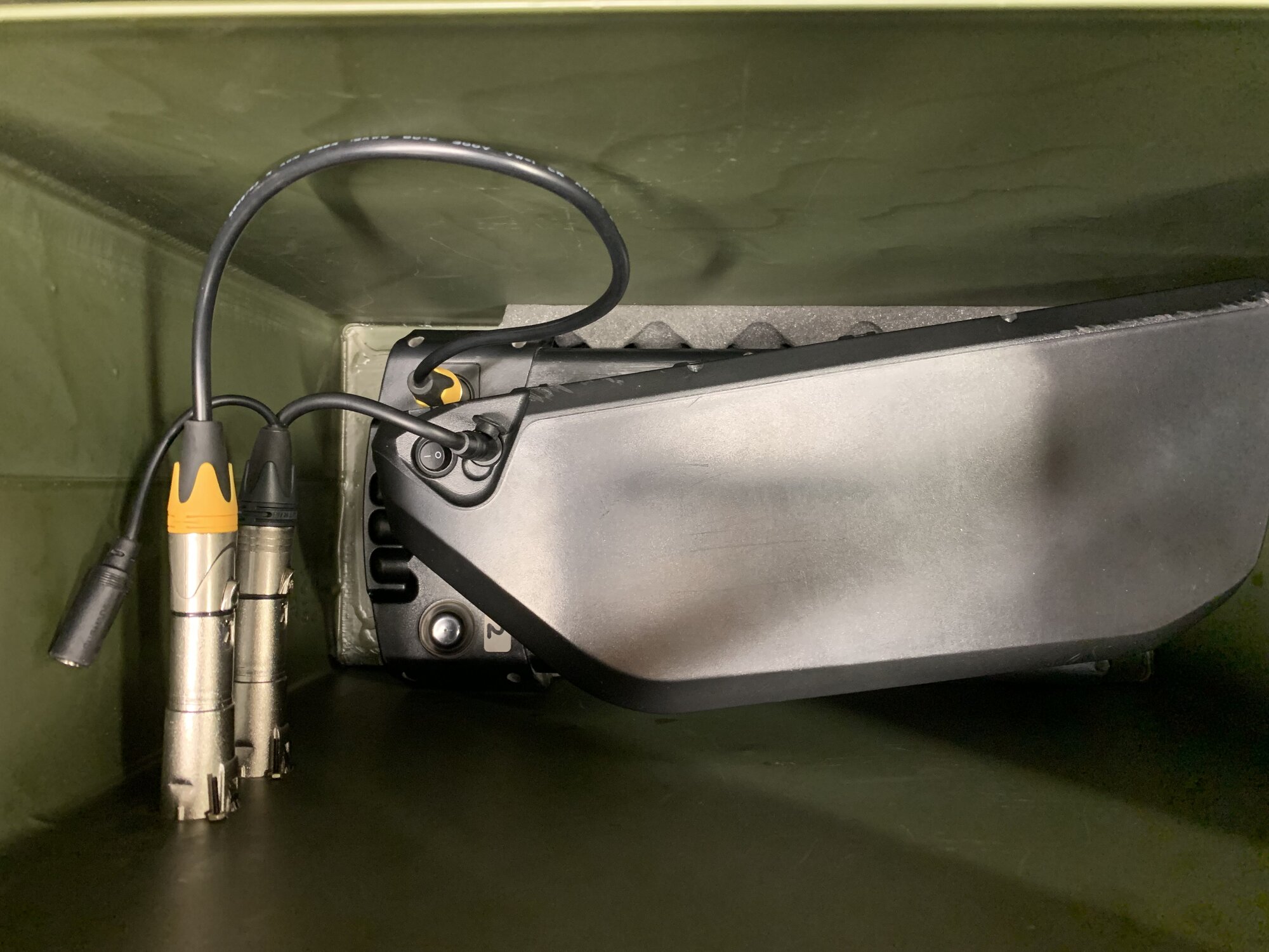 I can connect 1 or 2 chargers as necessary. I use Satiators with XLR plugs and adapters but almost any charger and connector type can be used. The bulkhead connectors allow the cans to remain sealed to better contain a fire.