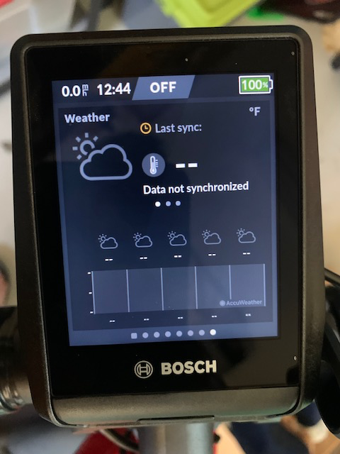 what he said! Open the Bosch connect app on your phone so you get the phone connected icon on your Nyon, weather should sync then