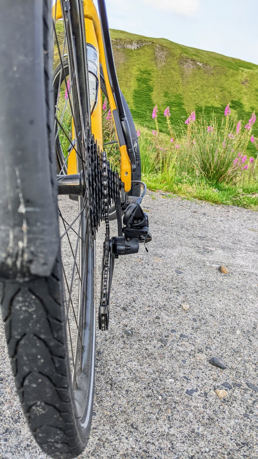 My evening ride today included a low speed crash. Although I thought nothing was damaged (on the bike ... my elbow is sore!) the indexing of the gears was clearly a problem. Closer inspection of the rear mech shows that it is now out of alignment. There's damage to the outside of the mech and the cage and rollers are bent inwards. The bike is rideable (I did another 35 km after falling off) but I clearly need to get it fixed.