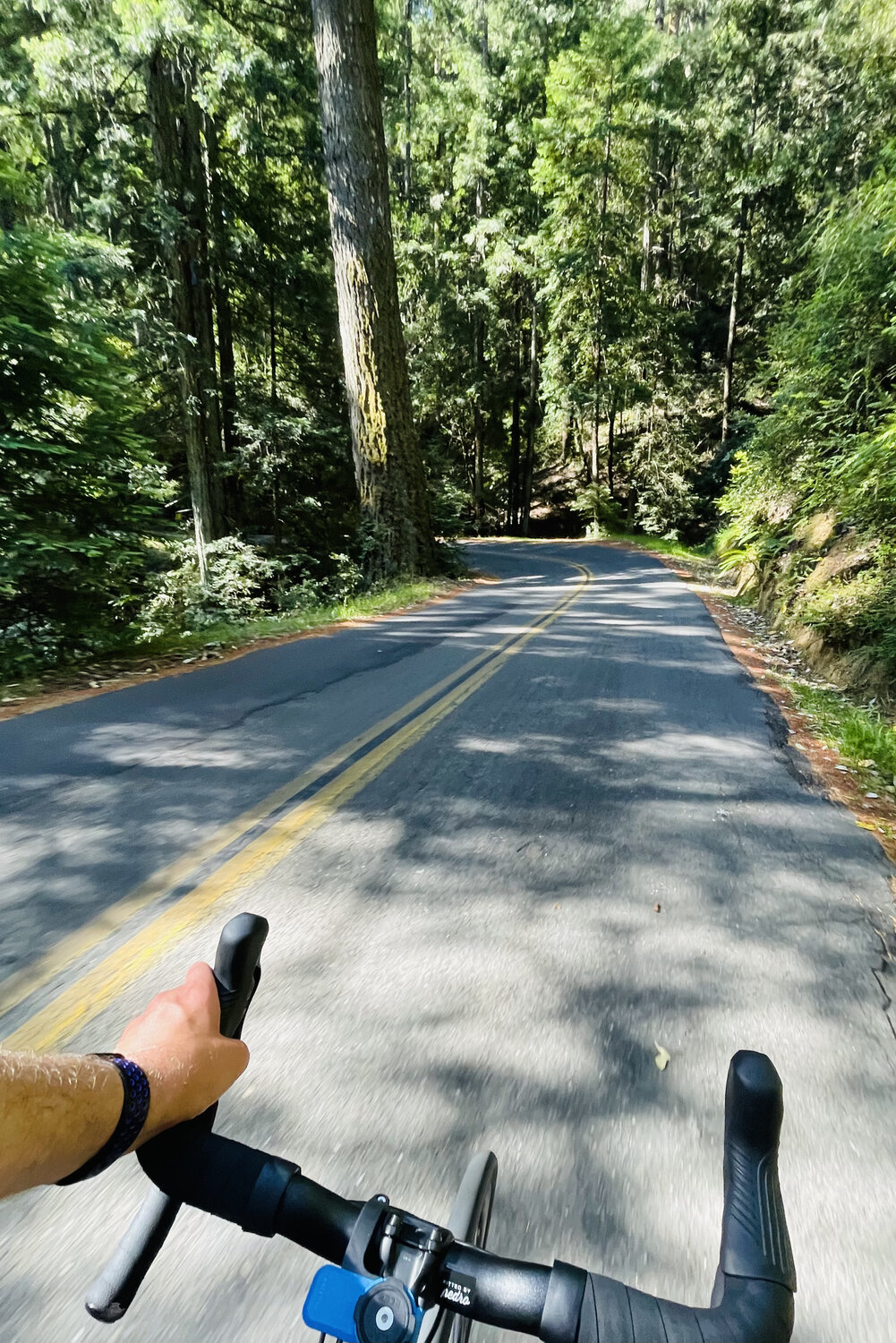 and then after the string of mostly flat towns up the marin peninsula, we ride into the redwoods for around 2,000 feet of climbing.