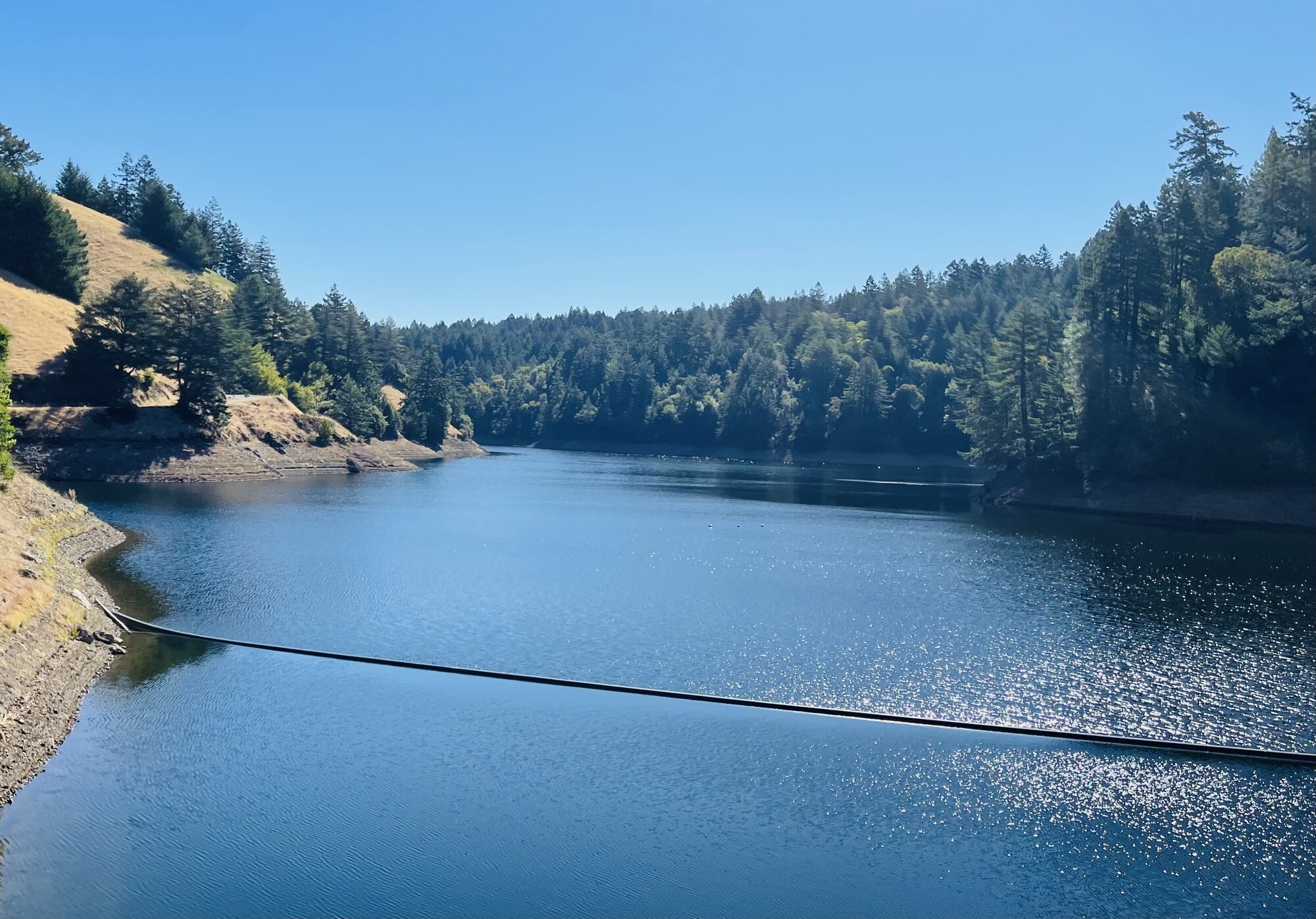 a reservoir sits at about the halfway point of the climb, the ride goes over the dam