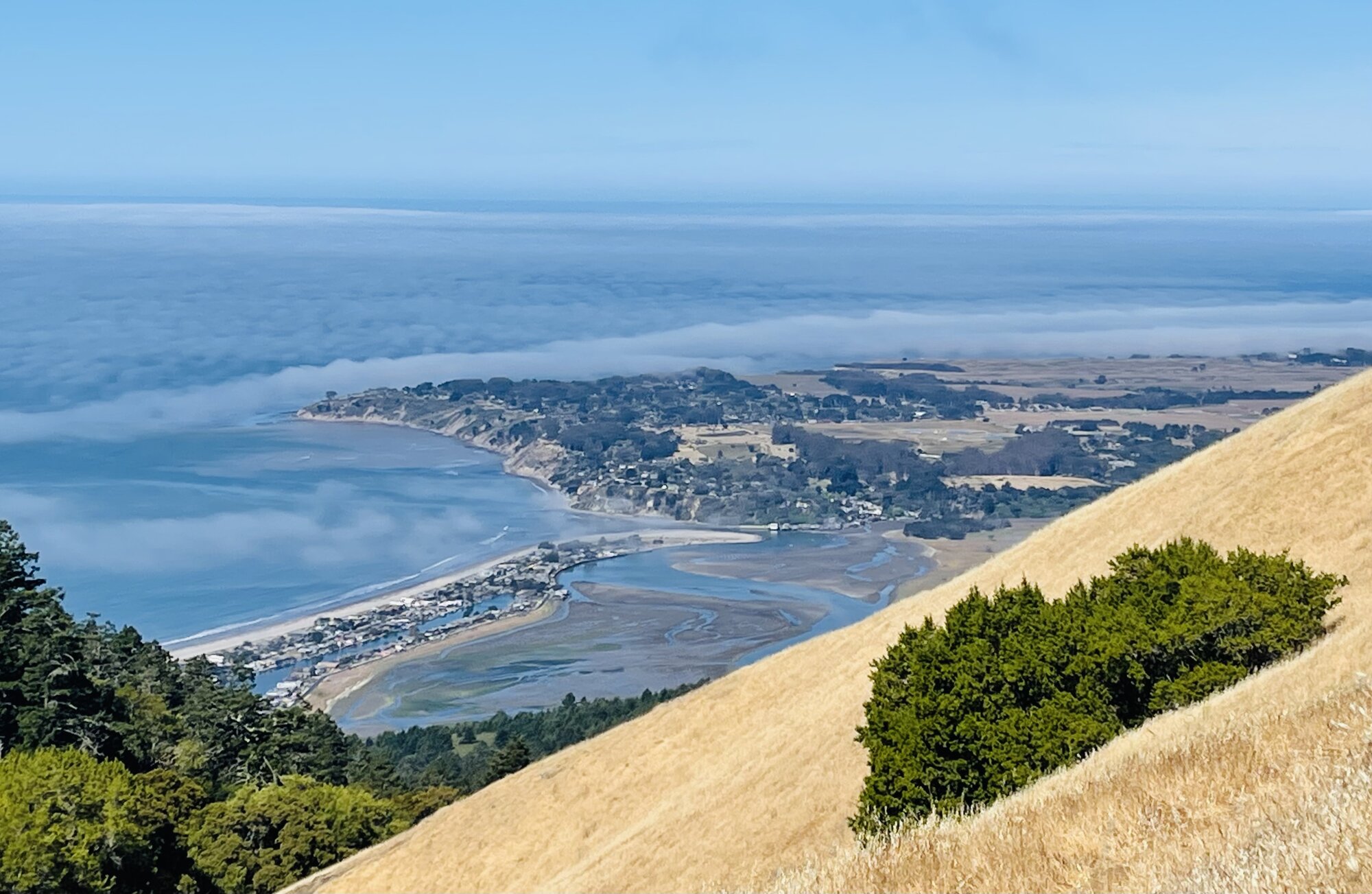 after the climb, the road emerges onto this ridge with the pacific on one side and the valleys/bay on the other. this is a stunning road, made more fantastic by the fact that i saw just one car over this entire section of the ride.