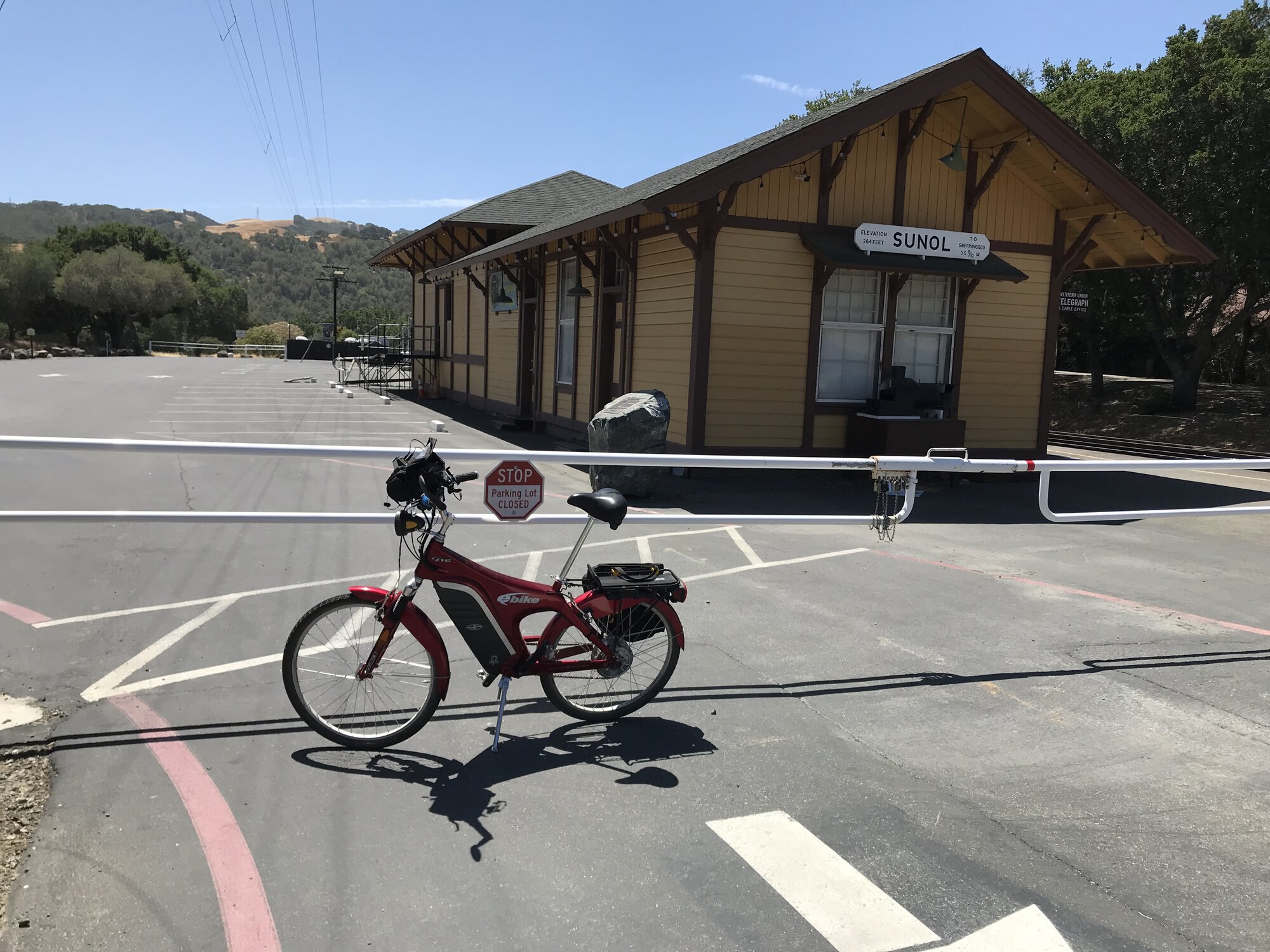 Finally got to the top of Verdugo Peak! (This was a week ago Friday, took me a while to post.) Yeah, I know, the photo is gratuitously iconic... but hey, I didn't plant the flag there. Verdugo Peak is "The Crown of Burbank and Glendale." (Ha!) My first ride over 30 miles, first summit over 3,000 feet, and first ride with over 4,000 feet of vertical. Took me 5 tries for Seeker and I to reach the top, and Friday was the last day to do it-- even so, the heat was brutal even at 7:00 PM. Of course, when I took these shots, I didn't realize the summit was actually behind me, at that radio tower.