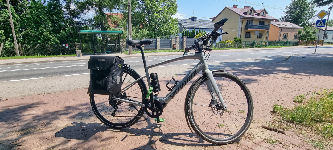 Give me a reason to ride, and I'll ride, despite of my tiredness, headwind or high ambient temperature! So I fancied I would ride up Specialized Warsaw to enquire Mr. Mateusz there about the applicability, availability, and price of the Future Shock stem suspension for my Vado SL 4. And I preferred to do it in person (I could e-mail, message, or give him a phone call instead). It was 31 C (88 F) outside, and there was unpleasant warm head/sidewind on the outbound ride segment. I can tell you: Vado SL is not fond of riding into the wind! I needed to use solid assistance (like, 60/85%), and the ride was not fast anyway.