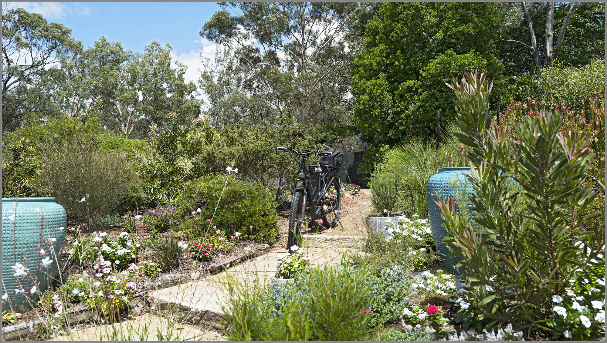 In the video below, we leave the rough section of the rail trail (state responsibility) as it meets the edge of civilisation and becomes a concrete bikeway administered by the city council. Turning off the bikeway we head into 1990s suburbia in which houses are crowded together on blocks of land that are less than a fifth of the size of those in our neighbourhood. The streets, littered with concrete humps, roundabouts and 'slow points', are named in honour of wine grape varieties. Here the husbands are morally obliged to keep the grass under control rather than let it resemble the antipodean version of the Seregenti which prevails nearby in the semi-cleared scrubland which Jen and I have called home since the mid-eighties.