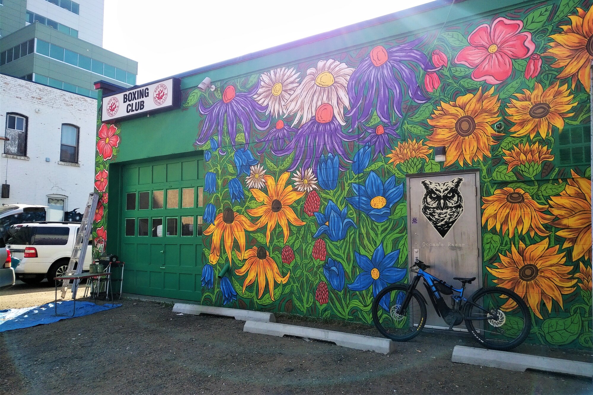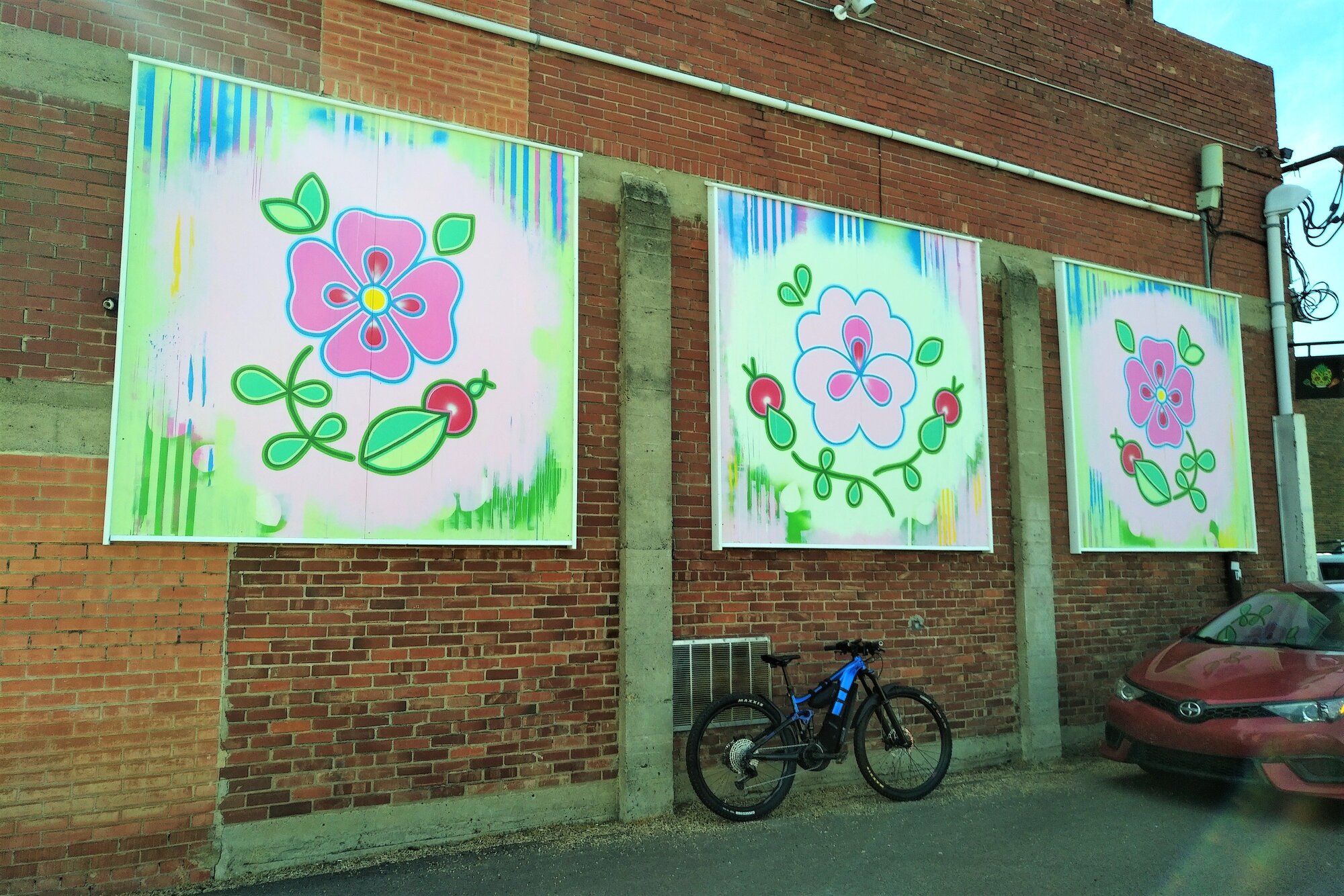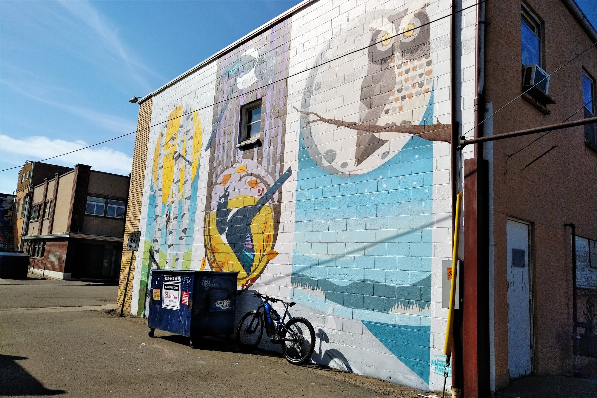 I was back on the bike today but with a different purpose in mind. I hit the trails today for a bit of a work out then popped into the downtown core to check out some of the recently commissioned murals meant to help beautify our city alleyways. Named Art Alley, the project was a collaboration between the city and the Downtown Business Association. I took a special interest in this as one of the buildings was once owned by my family.