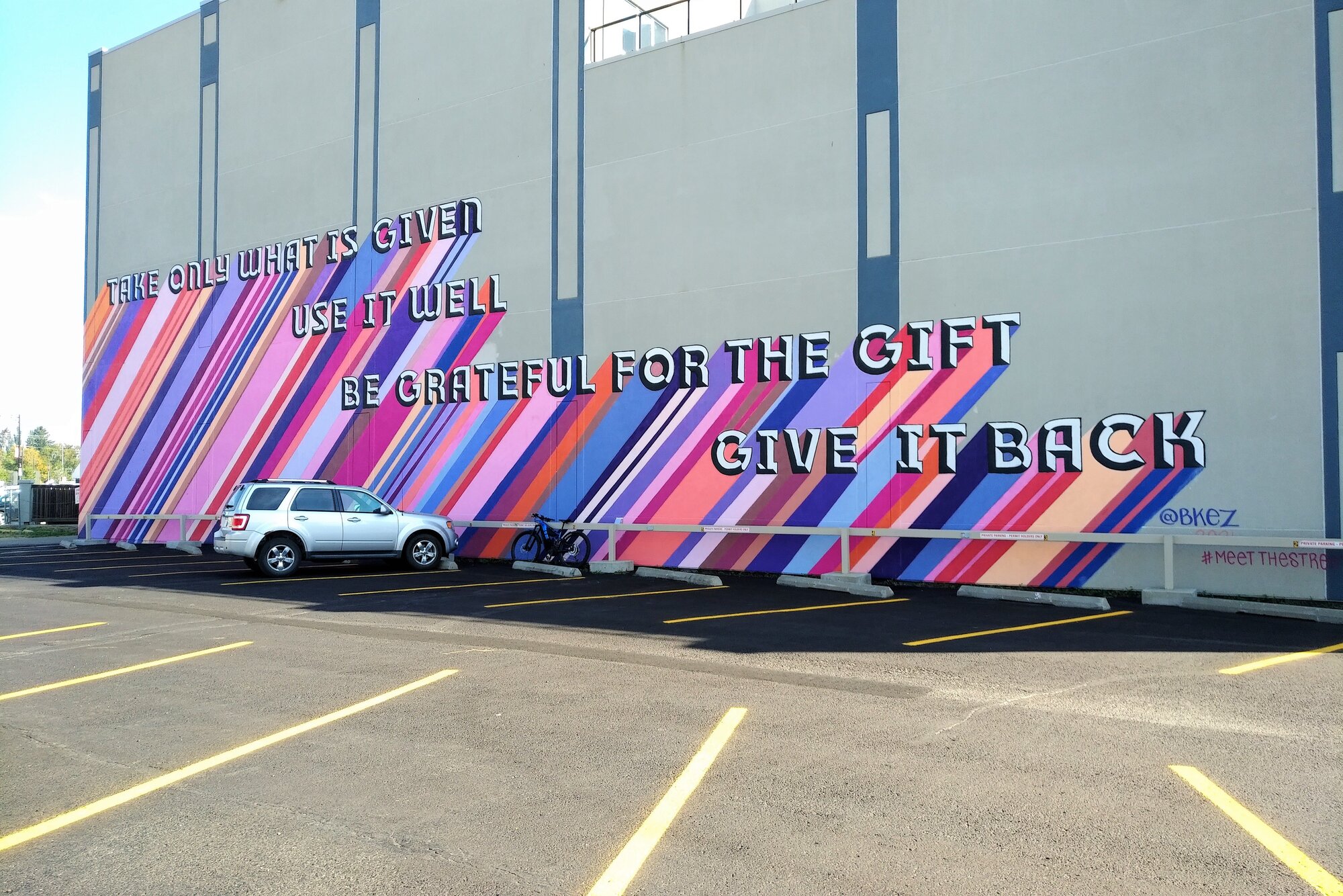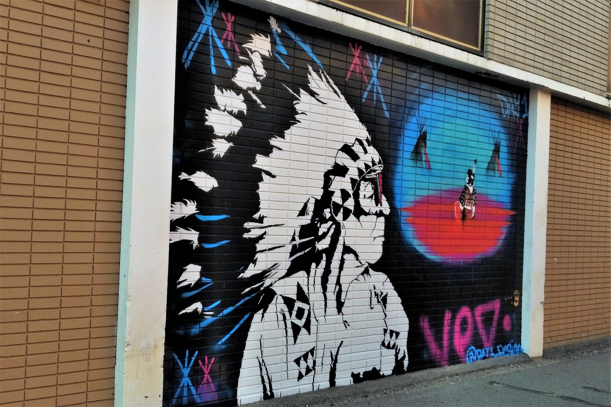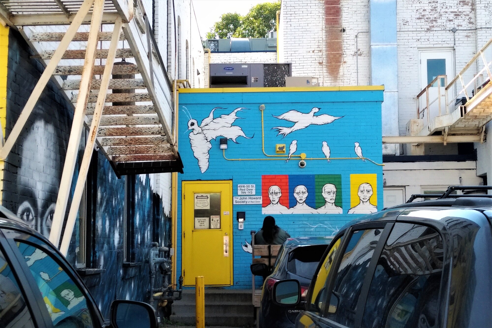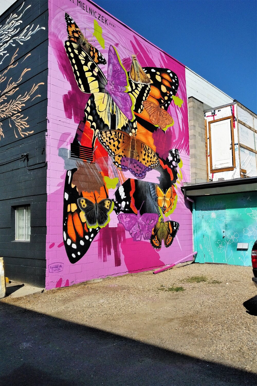 The murals certainly transform the alleys which were otherwise seeing quite a bit of negative activity. Thirteen artists from across Canada and as far away as the UK pooled their talents over the summer months to produce some truly visual work. Ryan Willert who painted ‘The Magpie’ is indigenous and is also from the local area.