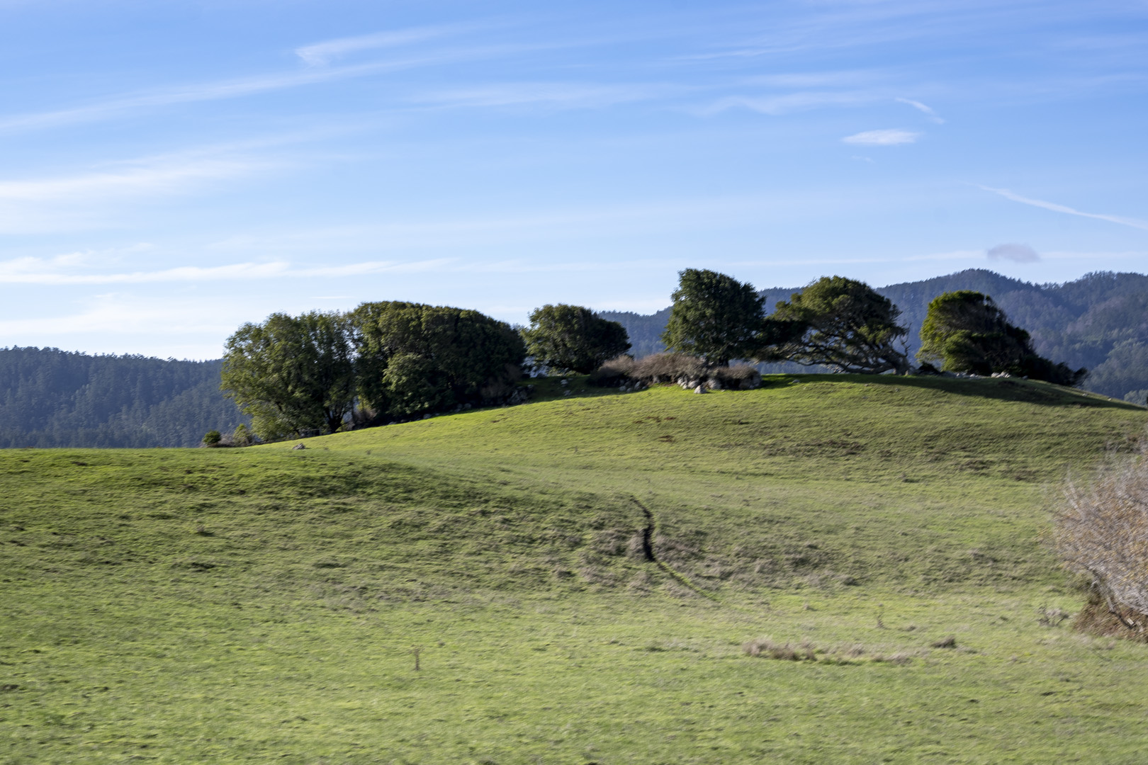 into the hills! the redwood forests clear just before the town of point reyes station
