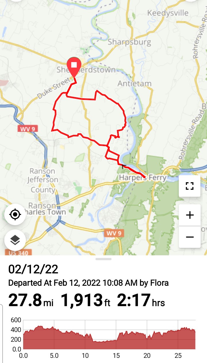 The majority of the first loop kept us on the smooth pavement until a mile from our destination where we merged onto the lesser traveled gravel road. This pathway ran alongside the northern branch of the Potomac River towards the National Park, a more sedate and scenic route. We took time to explore part of the workings for a now abandoned hydroelectric water plant perched alongside the river. Per Google: "The Potomac Power Plant was an innovative small hydroelectric facility that operated from 1899 to 1991, originally as part of a wood pulp mill (built 1888), and solely as a power house after a fire in 1925. Significant extant equipment/machinery in the plant includes a c.1905 Dayton Globe water turbine, and a 1925 Woodward water turbine governor. The building is also symbolic of industry in Harpers Ferry, as it occupies the site (and possibly the partial foundations) of Harpers Ferry National Armory buildings dating to 1834 and 1853, and contains reused structural materials from various Armory buildings as well as from an 1848 Harpers Ferry cotton mill (later a flour mill)."