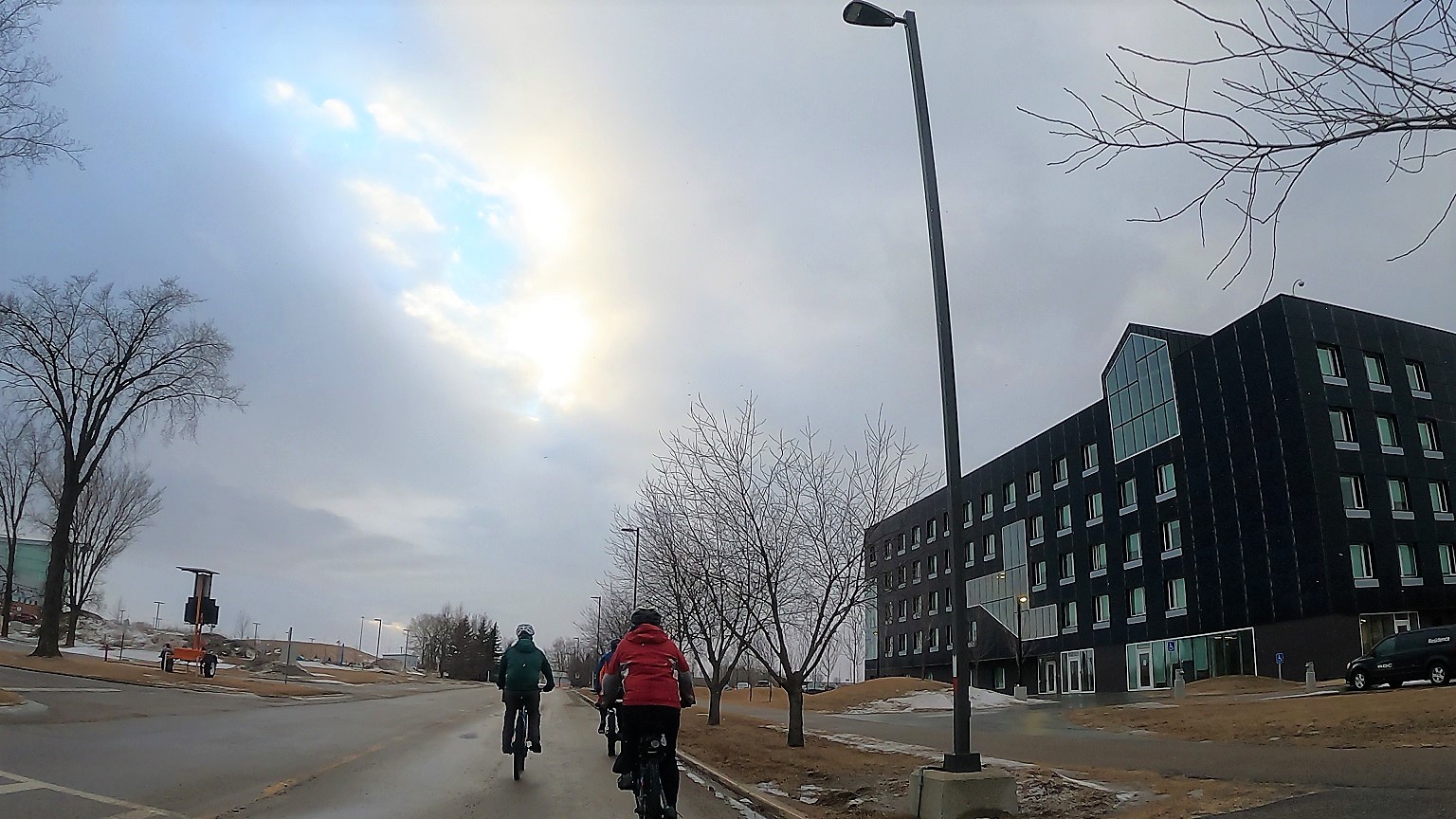 As luck would also have it, the temps unexpectantly soaring into the stratosphere that day prompted a good crowd of 22 riders. Most in attendance had eagerly shed the puffy winter jackets for something sleeker and more "cycle worthy". What we didn't anticipate was our meeting site was fully several degrees (Fahrenheit) colder than what we had at home, which had us collectively digging in our cars for any warmer jackets and gloves we might have brought with us. I did OK in that department, although I wish I had thought to bring a pair of warmups to wear over my cycling pants. We all did a small jig to ward off the chill while we waited for the start, but once off we settled down into a pace on the public paved roads that warmed the legs and cranked up the 'ol internal furnace.