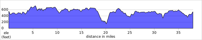 Temps were in the 40s and it was partly sunny. There were scads of chipmunks to be chased. Here's the cold spot where I turned around and went back.