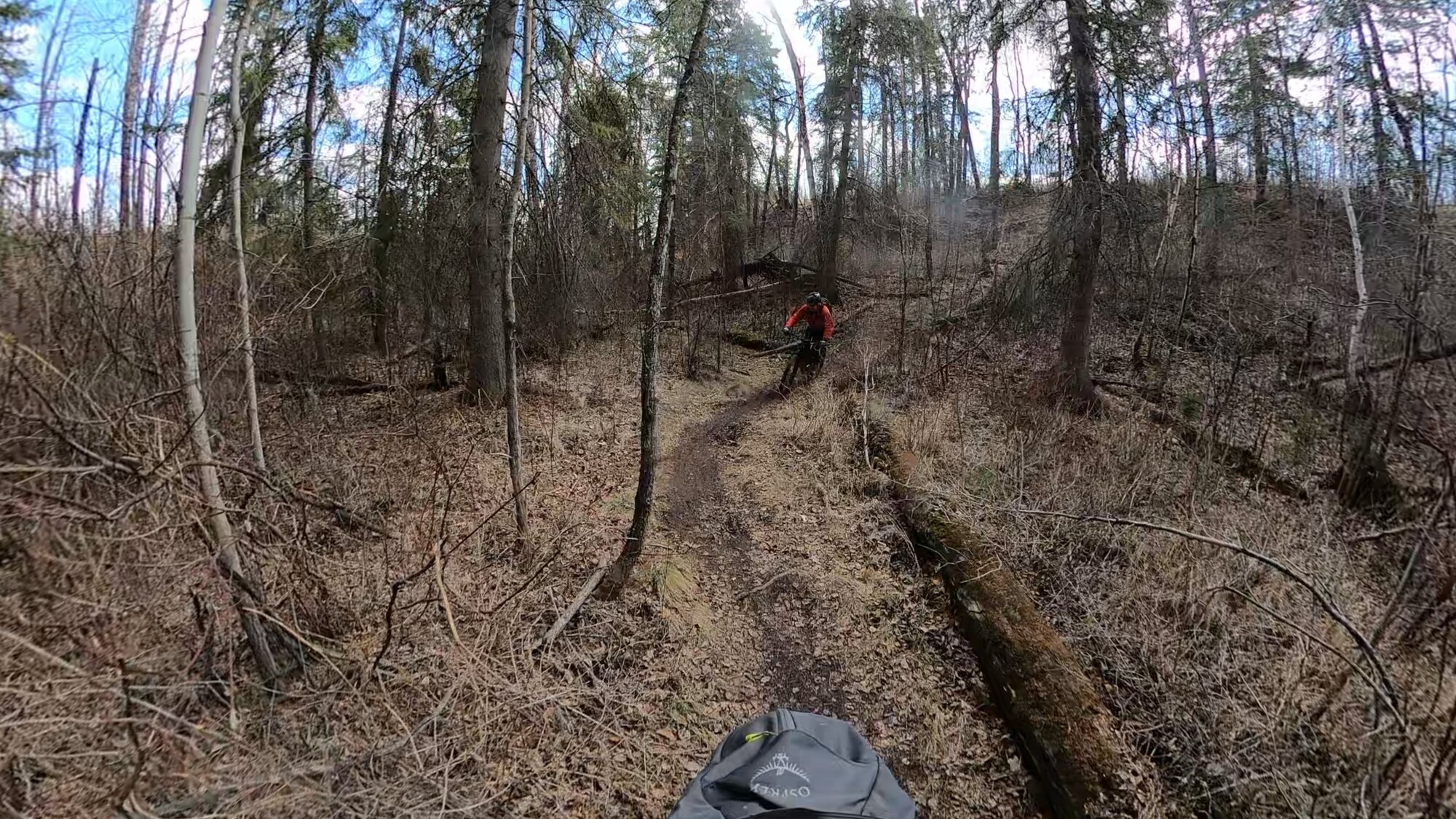 I loaded bike and dog in the pickup and drove up to the Loup Loup area, which is also a highway pass. I wasn't sure how the snow was, but it was about what I thought it would be. The road was bikeable until the cold spot, where it looked pushable but I had gone far enough for the Demon Dog today. It was great to be in the woods where it was quiet until one of the jets (probably Navy) flew over.