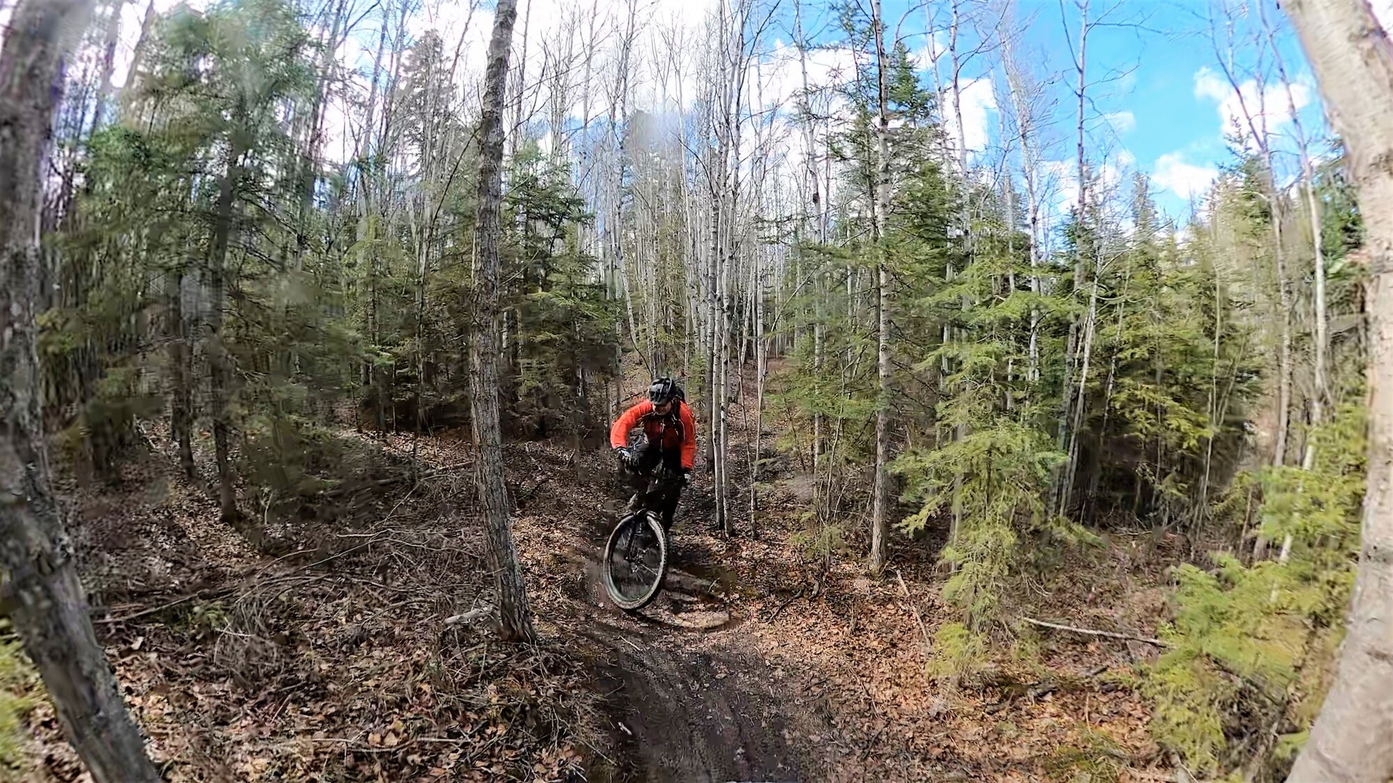 At the end of the ride, but wait! There are burned up remnants of slash piles with ash to go snuffling around in after soaking. Then hop in the pickup all wet and dirty. Not to worry, I have one of those Duluth Pack seat covers that are made for this.
