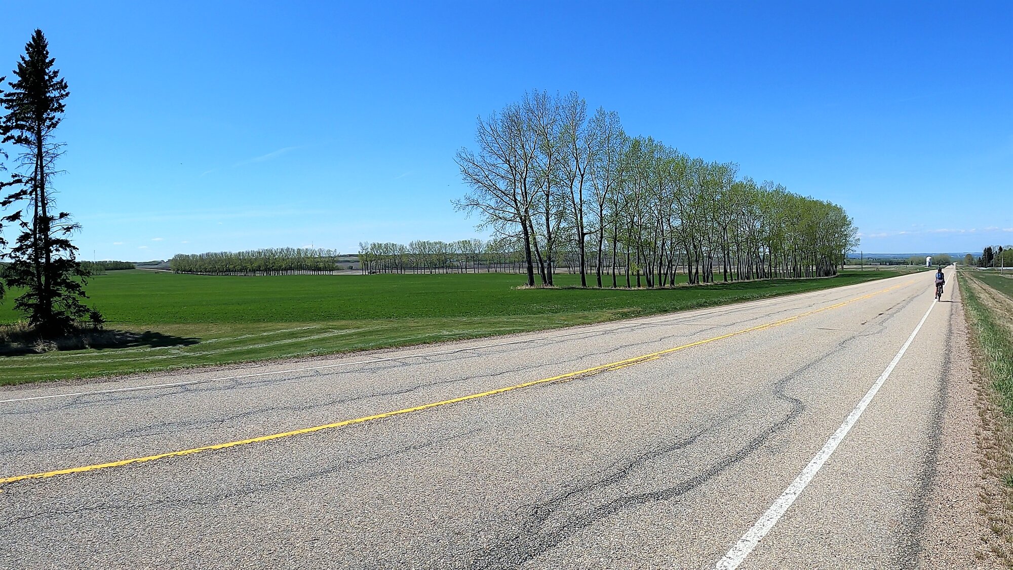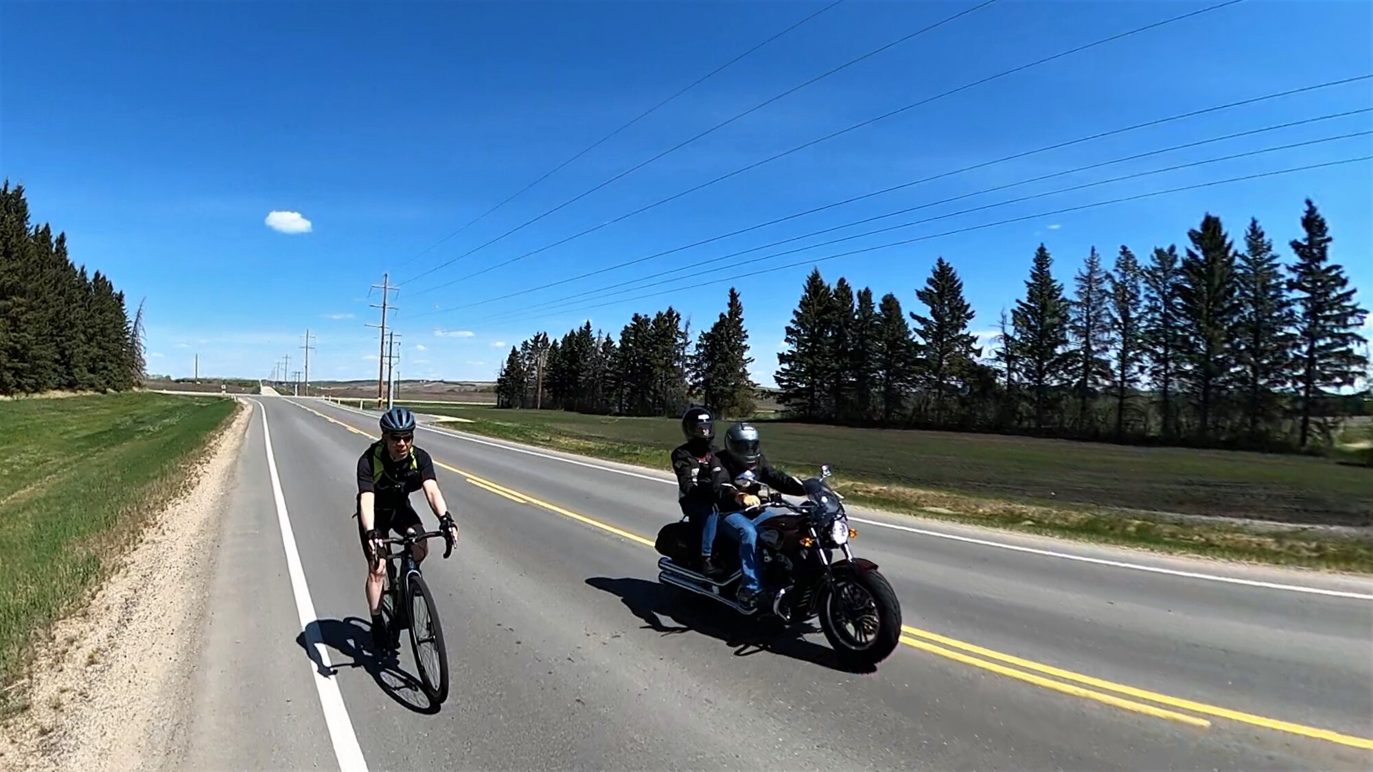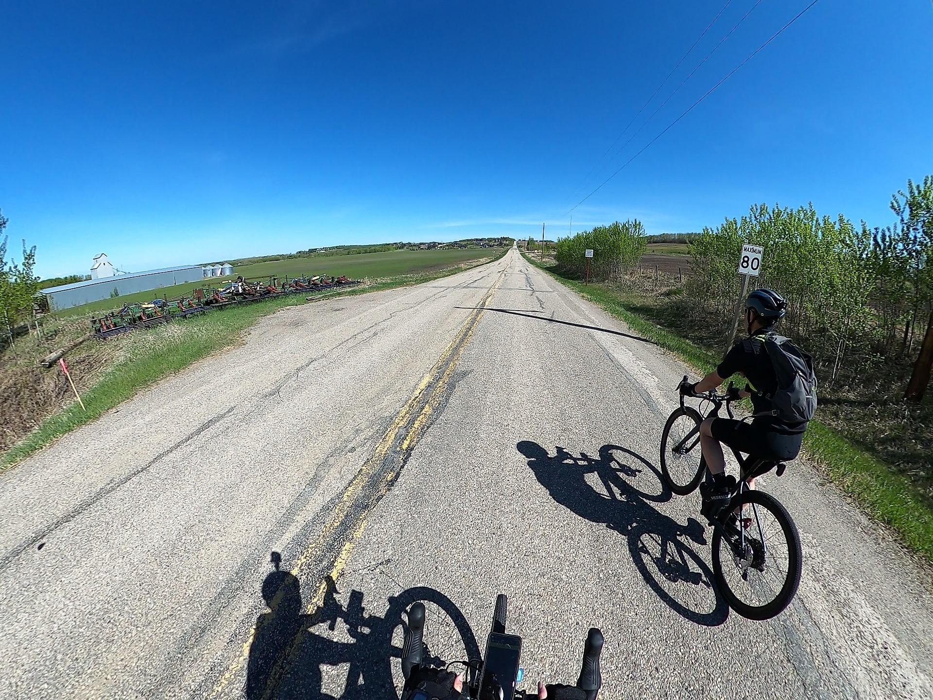 We set out on our intended route from home along Hwy 11 towards the small hamlet of Joffre, AB. We would ultimately bypass the town and instead ride along the Freedom Road where there’s generally less traffic to deal with. Since it was a long weekend, we underestimated the number of vehicles even on the rural range and township roads.