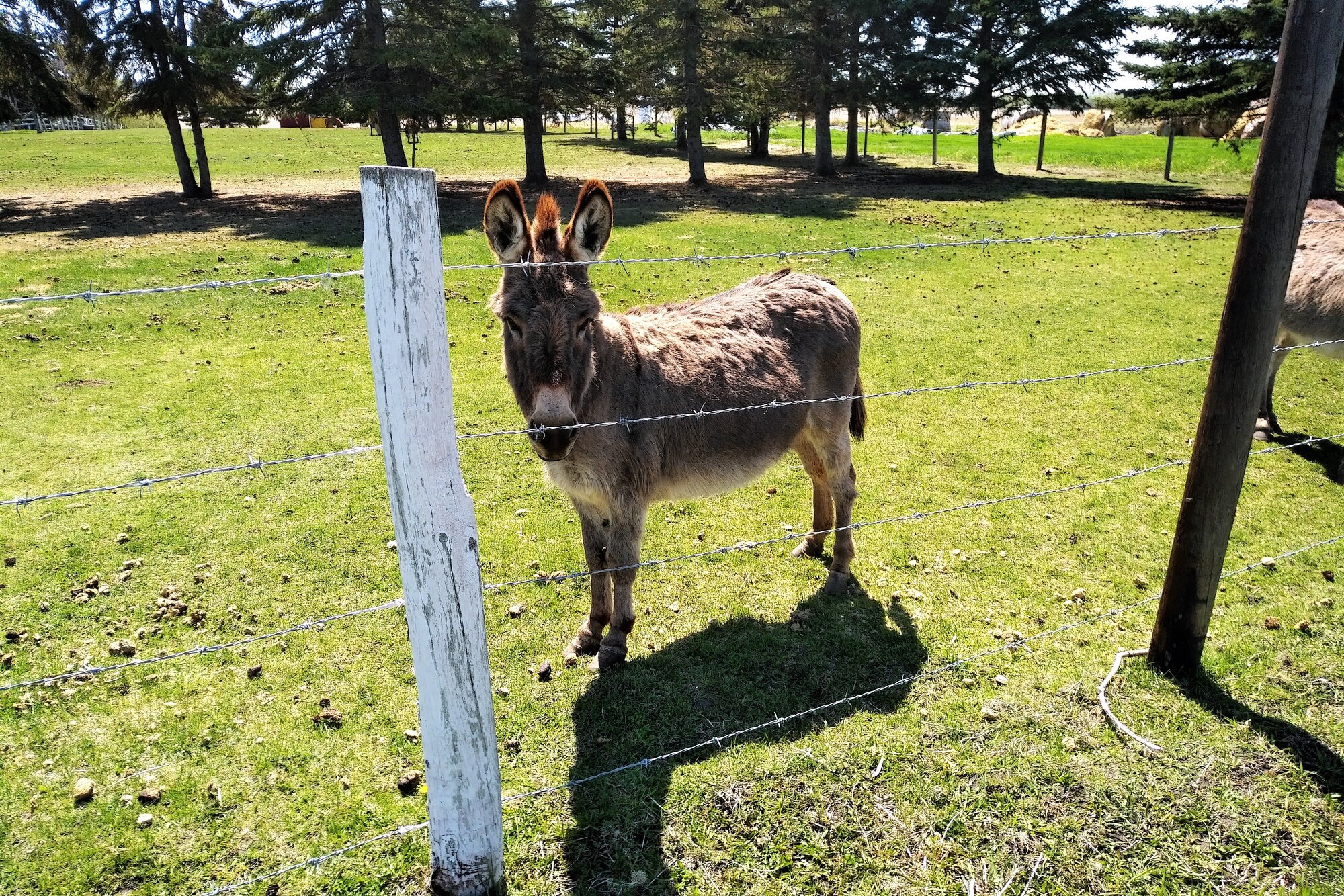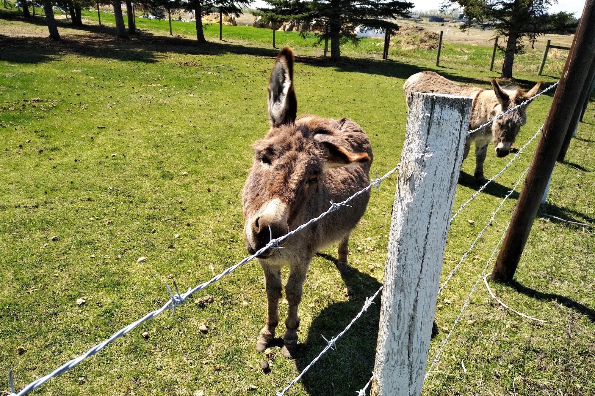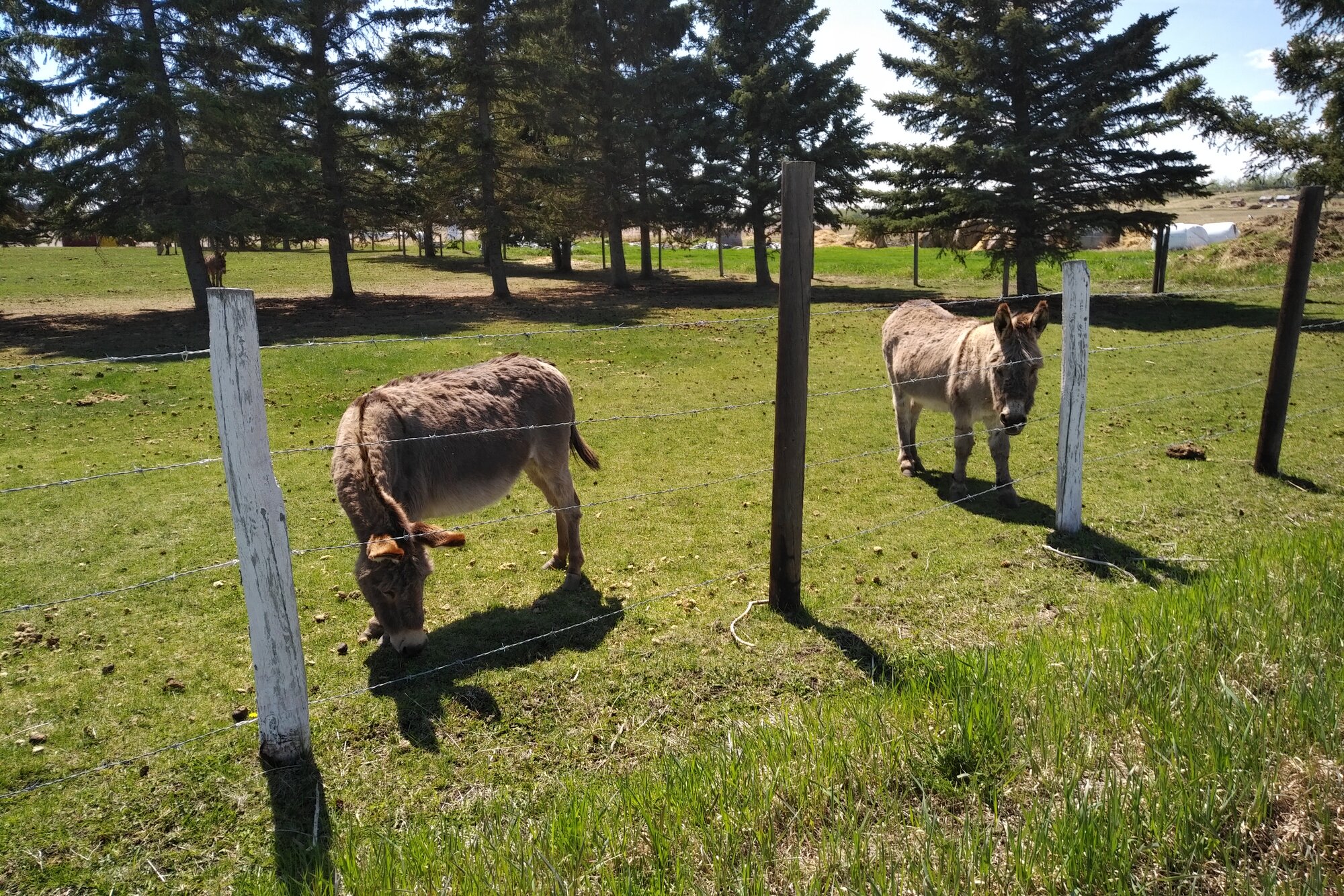 As we approached the city limits on the return leg, we could hear loud braying coming from the other side of the road. We noticed that a pair of miniature donkeys weren’t being coy about their public display.