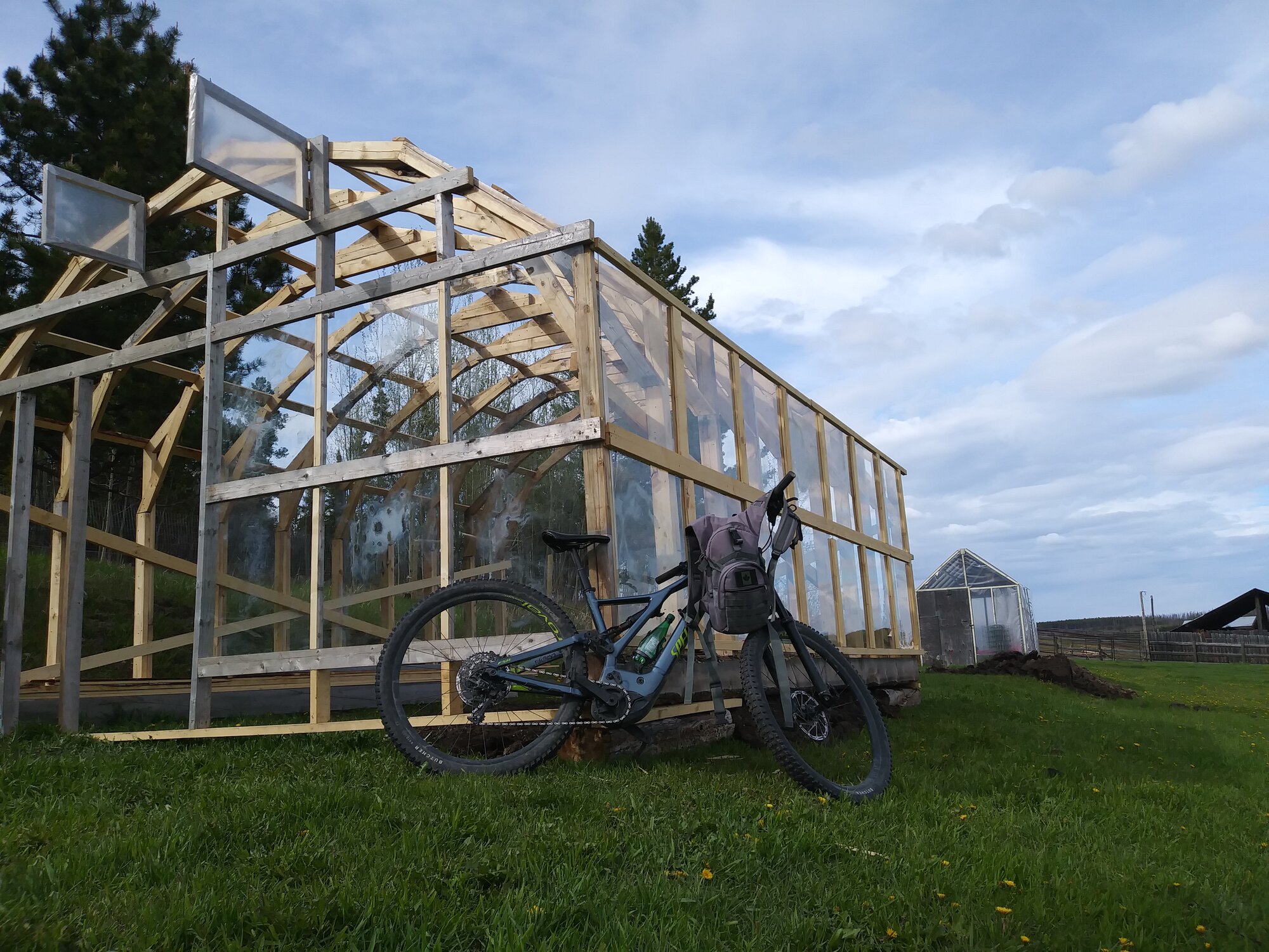 Like many of you I keep hoping to see David Berry's thumbs up on our postings. This week we are wrapping up a 3 week visit to Northern B.C. and I just love it out here. Very isolated and a healthy bear population to keep your neck on a swivel when riding (saw a good size grizzly today and thought my small canister of bear spray seemed pretty silly with his size) but nothing beats that fresh mountain air. My latest bike hassle is the rear shock is shot and pedal strikes over uneven ground is annoyingly jarring + be glad to get back home and sort that out. My project on this visit for my daughter was building her a new green house and safe to say she is pretty excited with her new plant digs.View attachment 124743