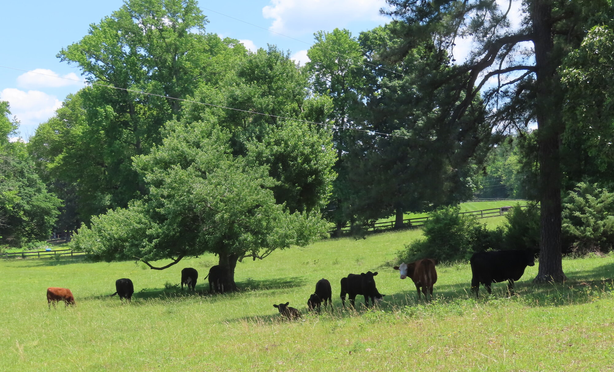 I meant to leave in the morning, and technically did, 11:55am. This humidity and heat of 90f is a taste of what's coming. Mad dogs and Englishmen thought the cattle in the shade though I wasn't barking. Such a pleasure to start back up after taking a picture, the wind of turbo just perfect.