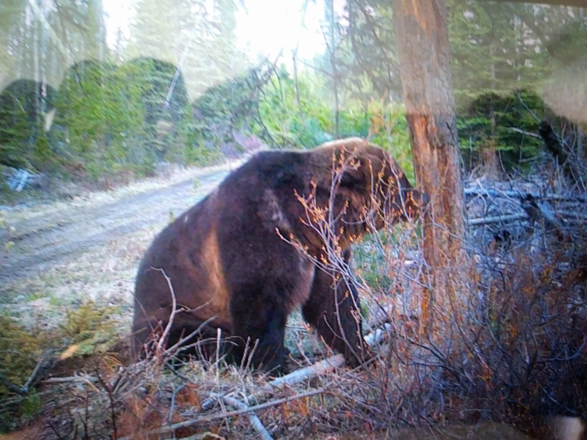 While on the bear theme while biking near my daughter's ranch I noticed (from a distance) a grizzly so son-in-law put up a game camera by a favorite bear scratching tree and we caught this pic later in the day from it - probably the guy I saw as they are fairly territorial and not happy to see another grizzly wander in their area - don't mind the black bears but the grizzlies can be so unpredicatableView attachment 125449
