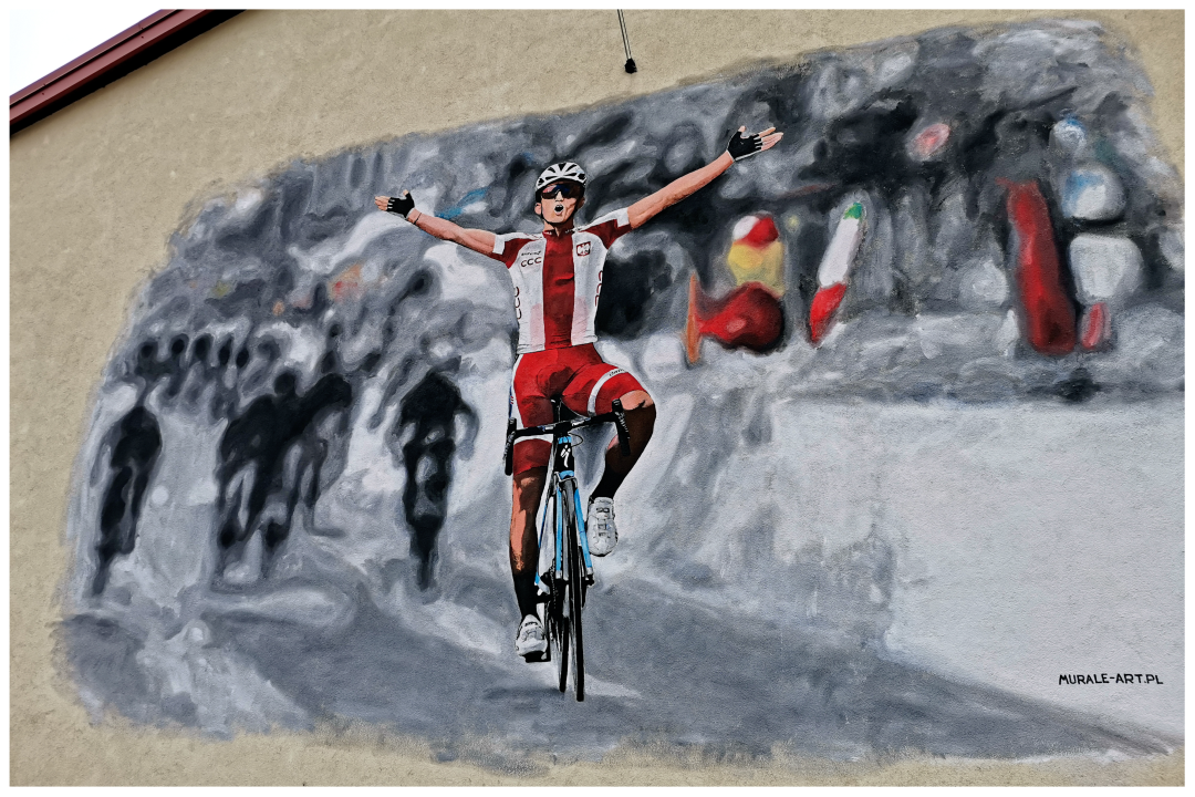 Our Mt. Calvary is indeed a cycling city. See the roadie on a Specialized bike :) (There are several cycling related murals in Góra Kalwaria).