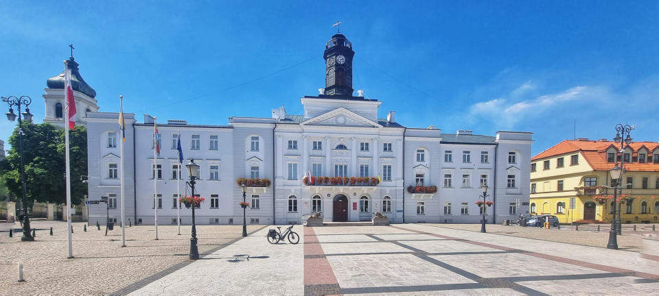 I made it! My Vado in the Old Market Square of Płock; the townhall seen in the background.