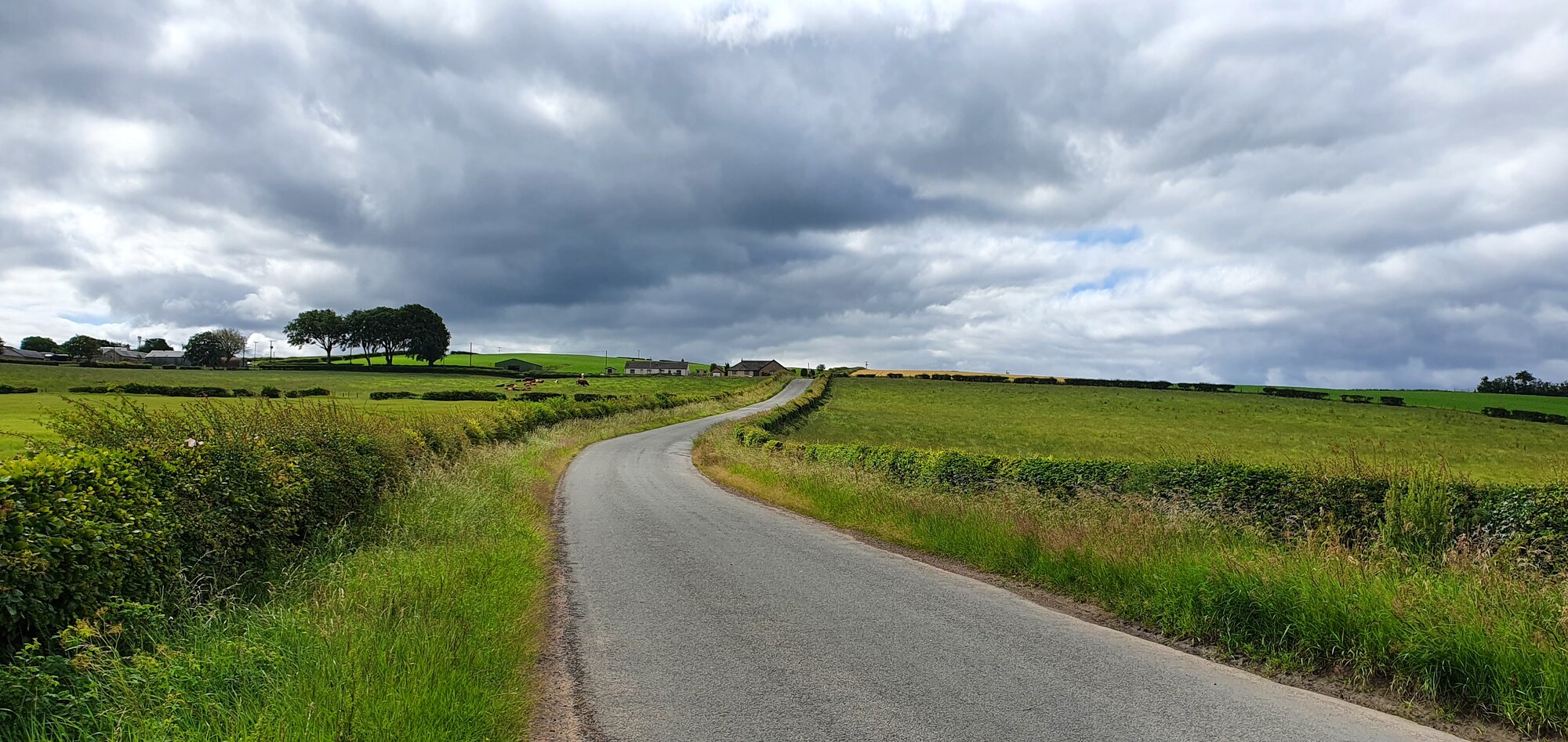 I had to stop and squeeze over into the roadside grass to let this one tractor pass. Even with him squeezing to his side of the road there was barely space to breathe between us as he passed towing a massive hay mow which took up the lion's share of the road.