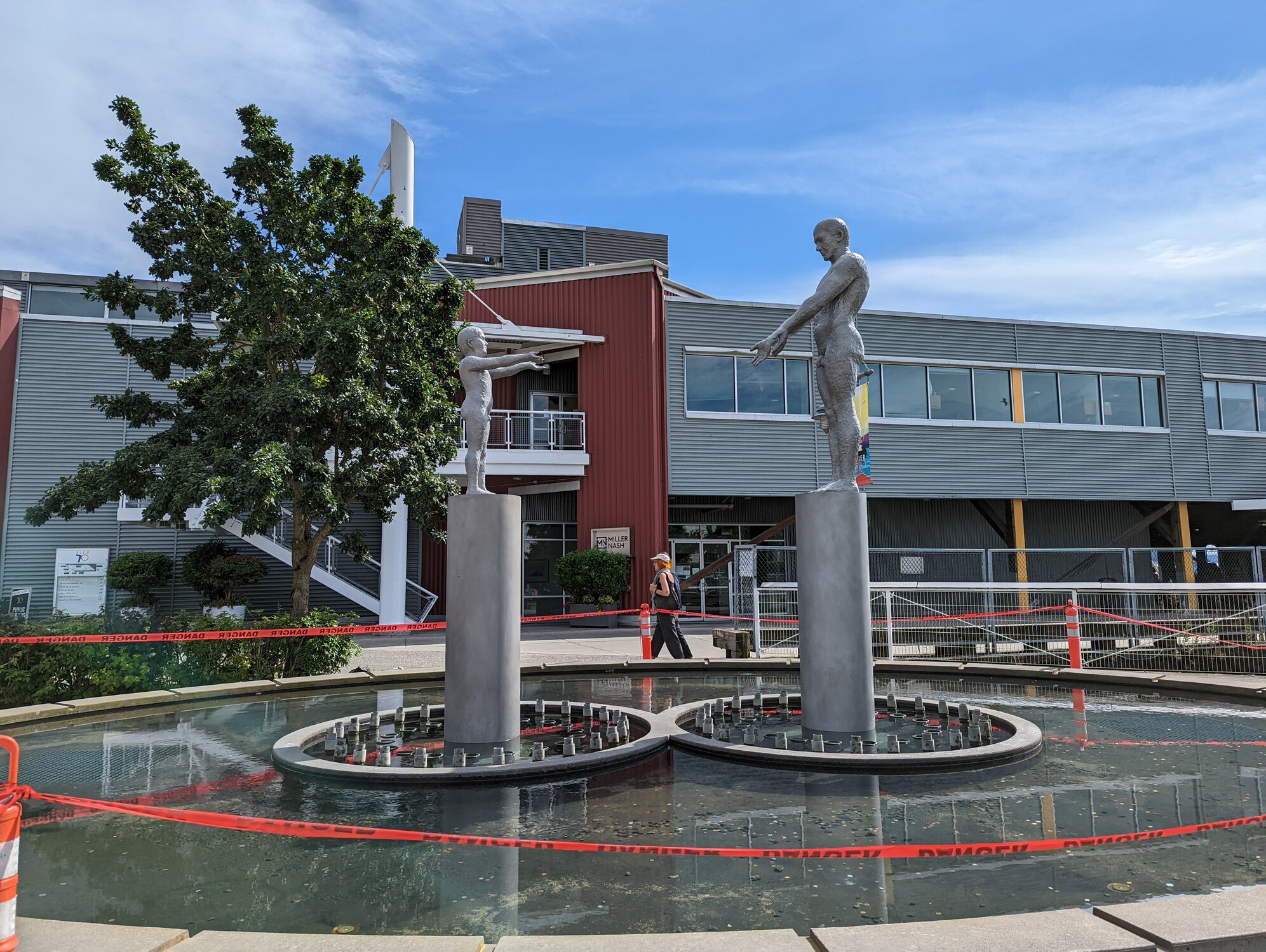 And the "adult" statue when the fountains are not screening one figure or the other. The fountains generally cover either the man or the boy and shift the water flow.