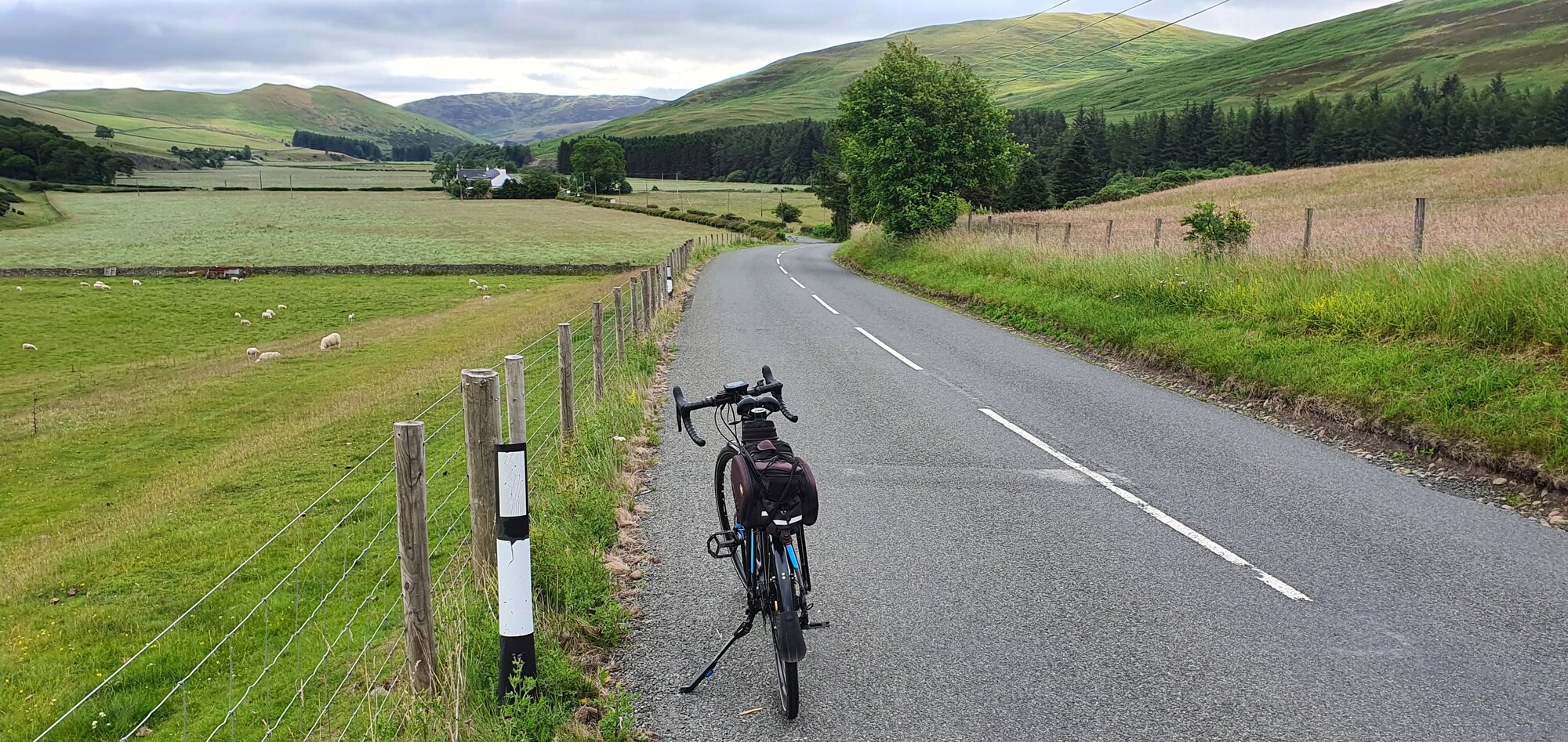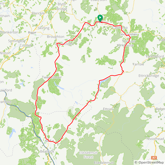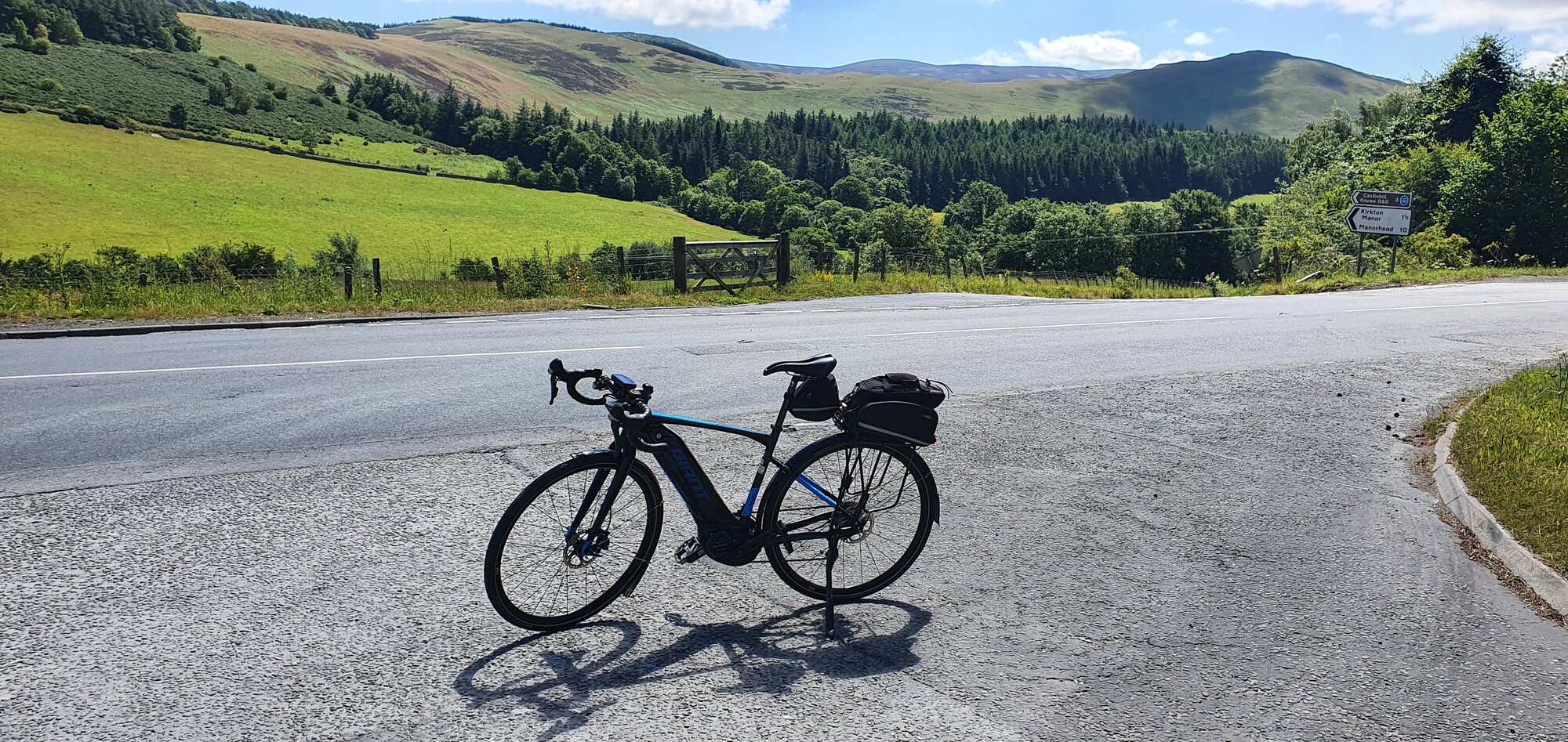 My first battery was getting close to 20% now which was pretty good going considering I had almost covered 45 miles at this point and mostly into the 20mph headwind! It was finally time for the descent back towards Peebles with 25 miles still to go and now I had the wind at my back!