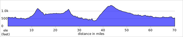 The climb was now starting, all the way up to almost 1200ft and into a 20mph headwind! Eventually I reached the summit and enjoyed a nice descent into the valley, the wind was really blowing up here and I didn't even manage 30mph on the descent!