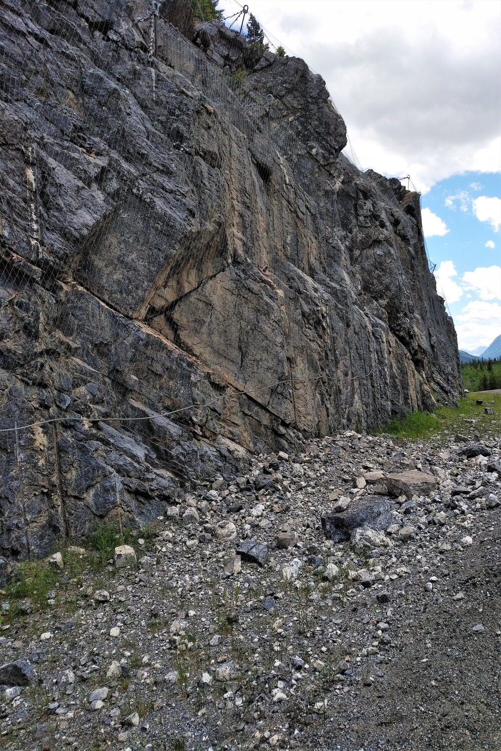 Rock fall was another hazard that could have potential consequences. The steel mesh anchored along sections of this rock wall did little to help and we had to dodge a number of large rocks that were strewn across the road.