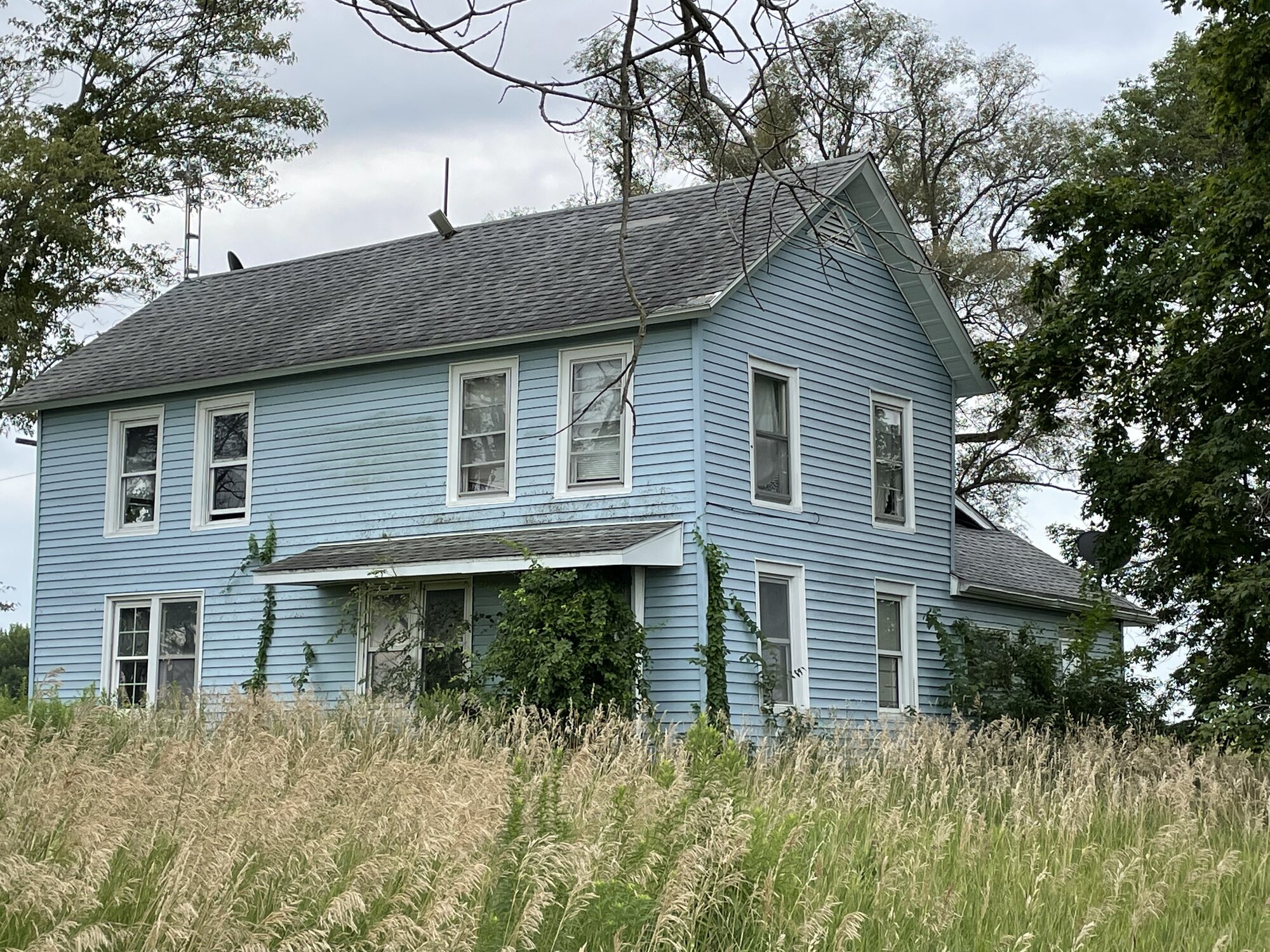 Barn pic of the day. Plus a crop duster and an abandoned house. Did about 17 miles today. The barn has what is most likely it’s original wood siding. It looks good in the pic but is a little rough. I waited about 20 minutes for the crop duster to get done, I didn’t want to ride where he was spraying. It’s my understanding they are doing corn with a fungicide. The house looks like it was sided with vinyl at some point in the past but it hasn’t been lived in for several years.