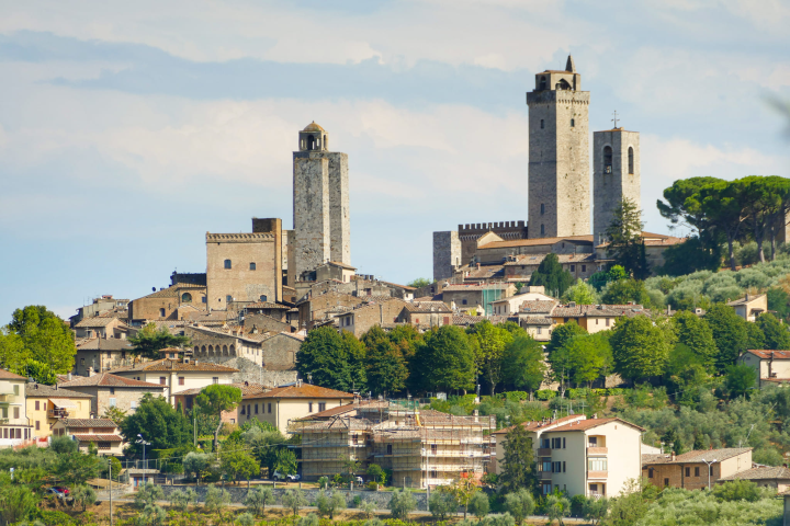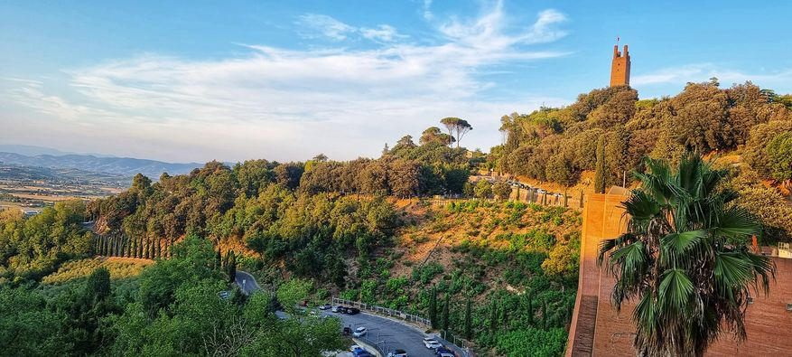 San Gimignano, or the "medieval Manhattan". Another ancient city on via Francigena once sported 72 "sky-scrapers". First of all, once a rich neighbour built his own tower, all other wanted to have the same or bigger! Then, there was the sad Guelph and Ghibbeline thing. Guelphs were a political faction supporting the Pope (mostly burghers), and Ghibbelines supported the German Holy Roman Emperor (mostly landowners). As people of both factions literally lived in the same city, there were frequent clashes, melees, ambushes, and killings. For that reason, the S. Gimignano towers were fortified, and there were no windows below a certain level! Nowadays, only 14 towers have been preserved