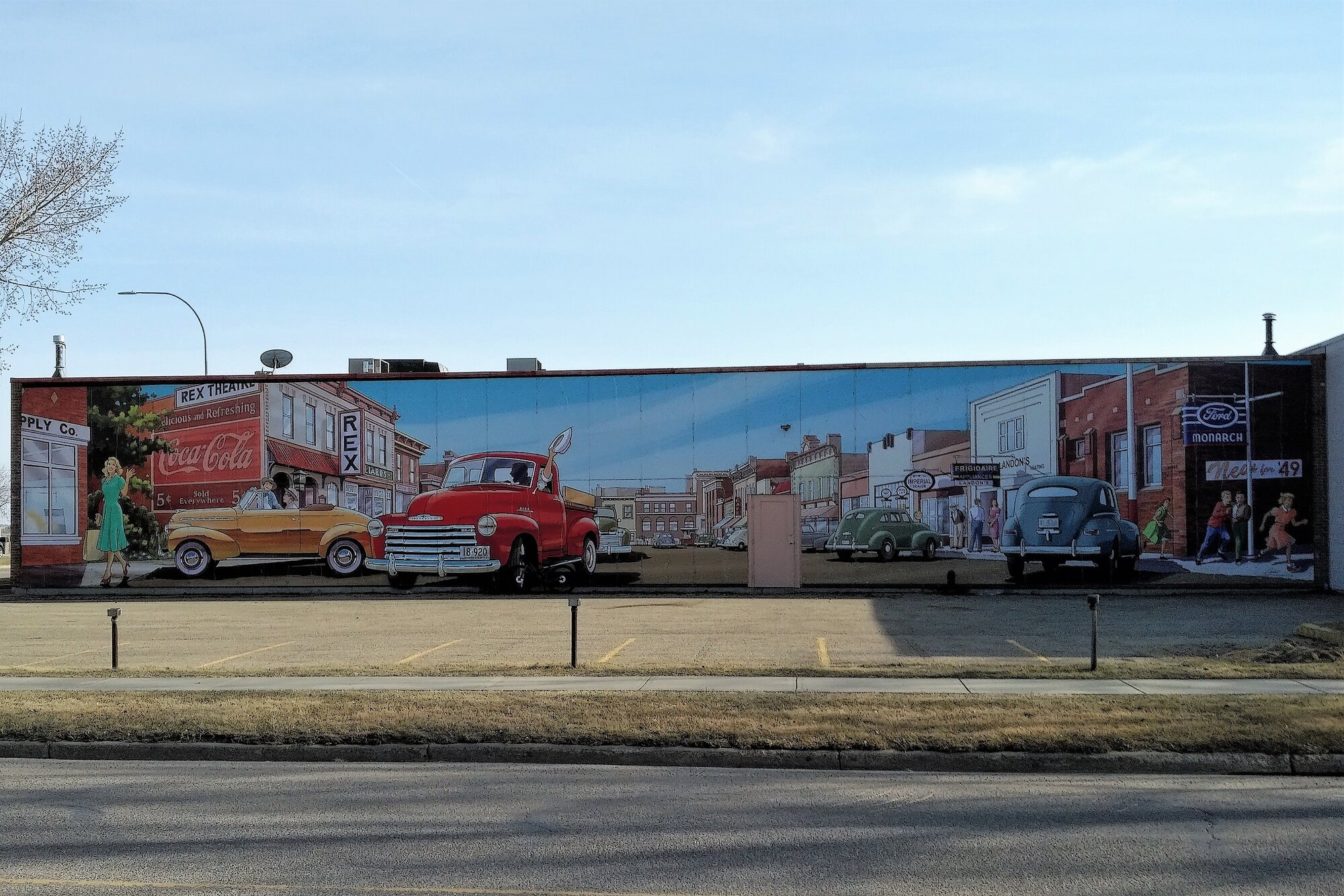 Nanton Street was a popular street for parades. This mural features a view of the street looking north. The crowds were painted into the mural, but unfortunately, the marching band was not included.
