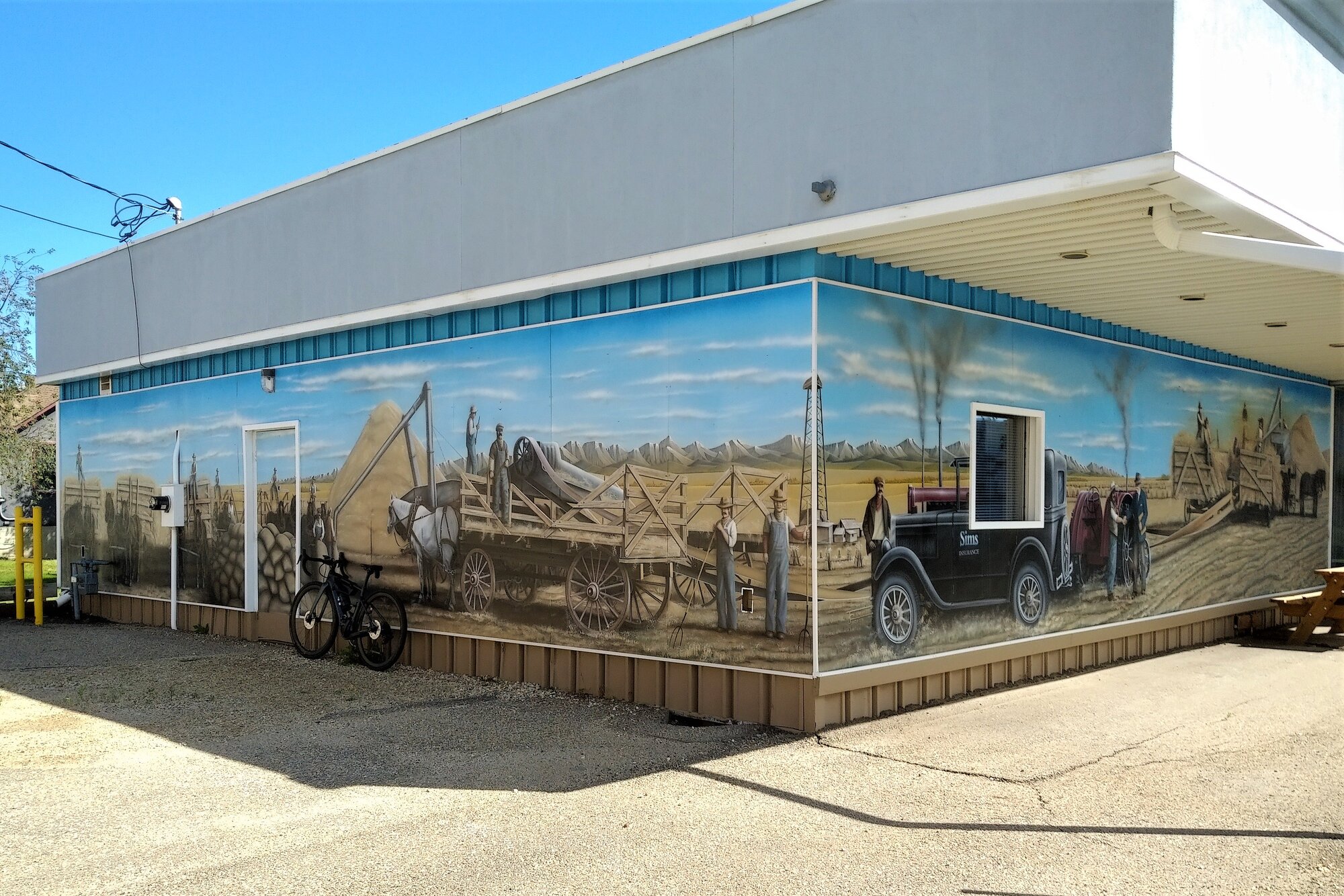 I’ve been looking forward to making a return trip to Lacombe, AB since I last visited this charming town back in April. It was an impressive mural on one of the town’s buildings that first captured my attention so much that I felt the need to see more artwork most of which is discreetly tucked away in the downtown’s alleyways. It all started when the mural project committee hired Tim Giles back in 2004 to begin the work of creating historical scenes on the backs of buildings of several local businesses.