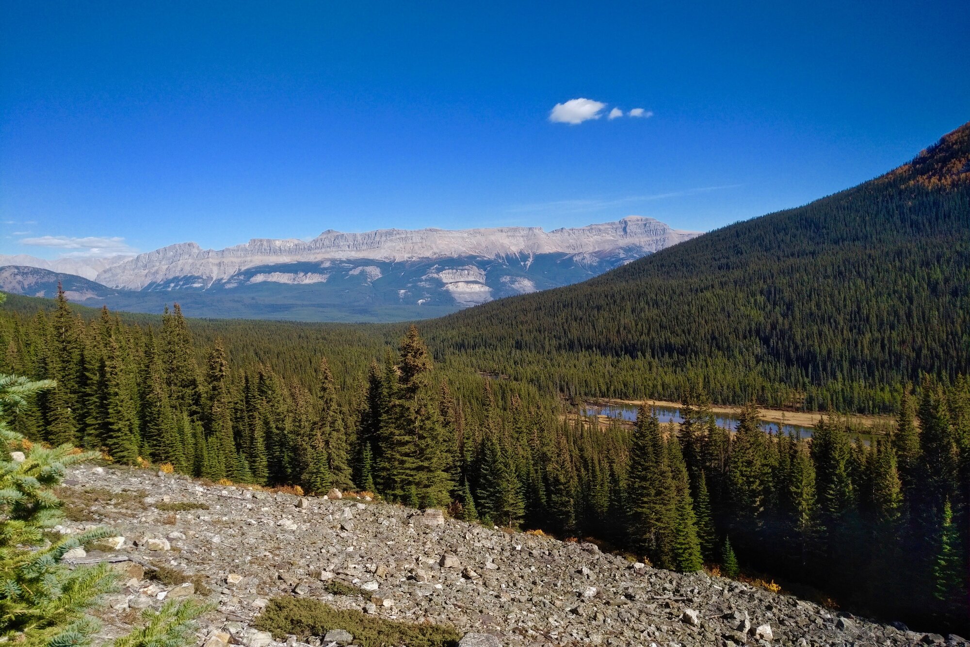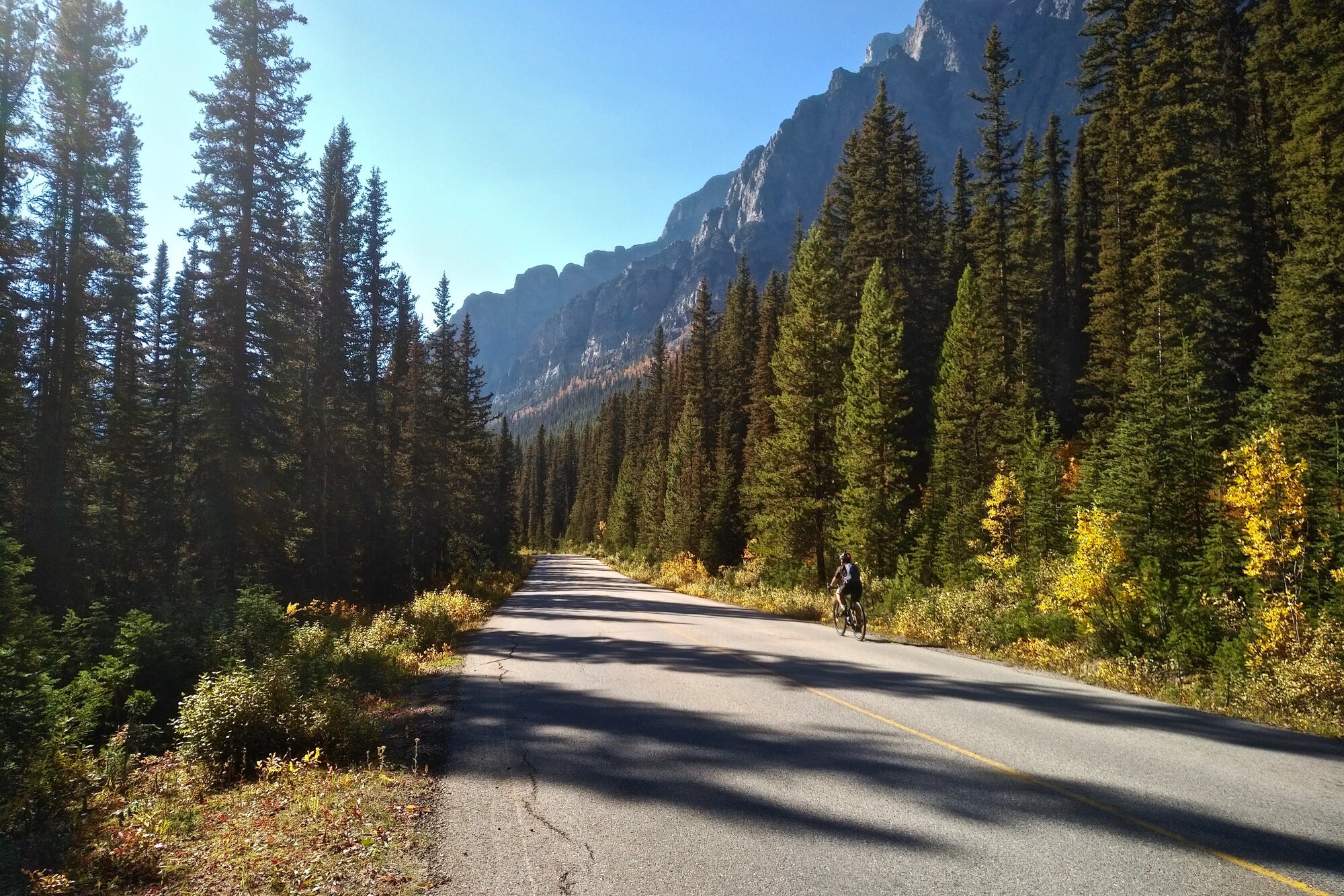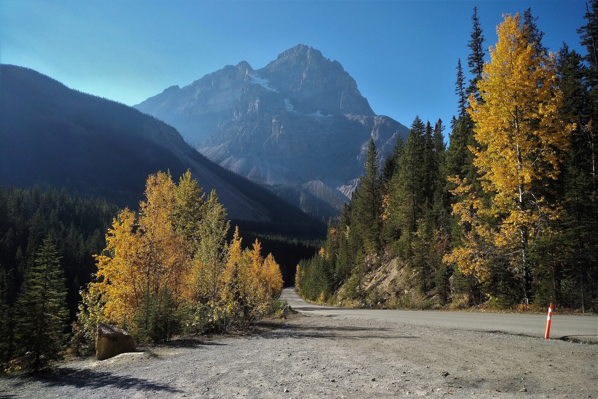 A parting shot of Mt Field taken from the TC Highway. Even though Moraine Lake and Takakkaw Falls were neither of our longest rides to date, it was nevertheless a glorious two days of cycling that we won't soon forget. When the weather conditions are this good, the fall season can sometimes be the best time to be out on the road.