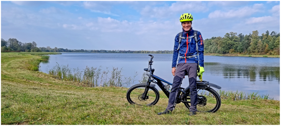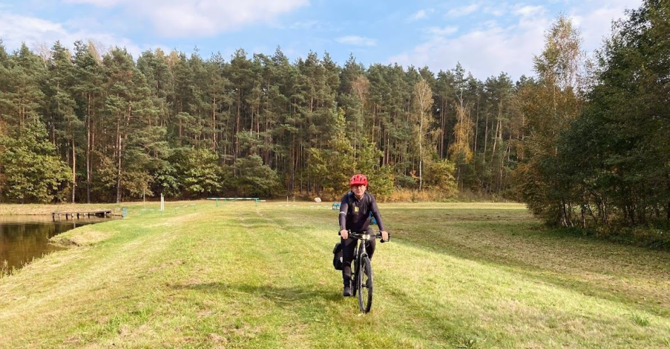 Jacek at the Bolimów Lake. As you can see, he rides a Giant Trance E+. The e-MTB was too good for the rough terrain of the Bolimów Landscape Park! However, MTBs tend to be slower than gravel bikes because of their gearing. Nonetheless, Jacek (riding his Monster at minimum assistance) was as strong as he could easily compete with traditional gravel riders!