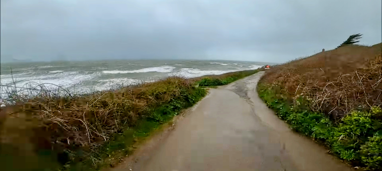 We never lose a chance to say sorry in England and these dog walkers apologised to me because their dog was blown in front of my bike which I was equally idiotically riding on a beach in a storm.