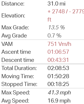 Lot's of paved paths, complete with lots of walkers and their requisite dogs. In the circled area on the map, popped off the pathway and did a quick 300m climb on a trail that had some dry surface, some wet, some snow and some loose gravel. The JW's handled it just fine - although it was only max 14%. From there a traverse on a slight incline for about 500m , where I tried out the traction by bouncing from one rut to the other, and then a quick 100m descent back to the pathway towards an eastern exit (under 14th street) and a burst of speed heading for home and an appropriate beverage on the patio.