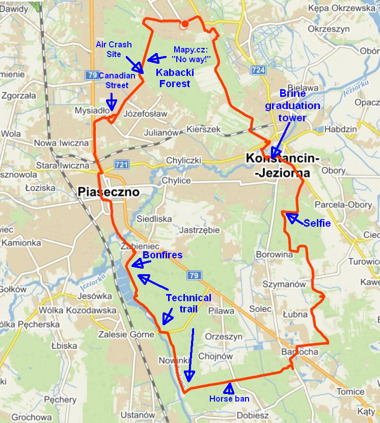 I need to make a fairly sharp turn at point X on the map, and as I pushed hard on the pedals the rear tire broke loose, threw me sideways and I needed to do an unceremonious dismount. Nearly a crash - which would have been a bugger, but not the most graceful dismounts either and I think I almost had saved it when that larger tree helped me make up my mind about staying on!
