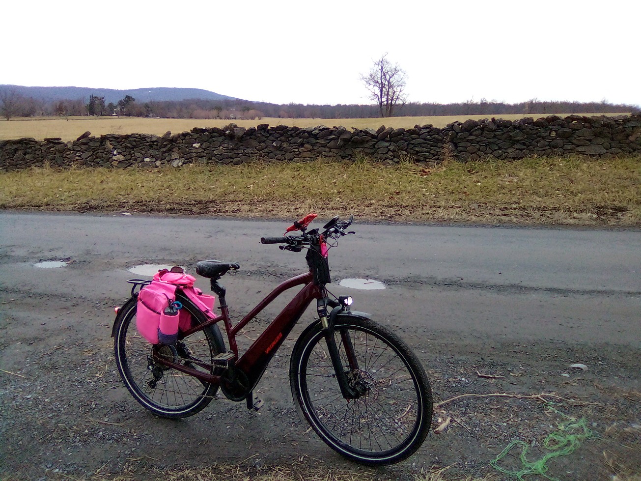 Yes, there had been some issues. Because of the battery contacts contaminated with snow, the Vado motor experienced occasional "hiccups", No Battery messages and the like. So what? I was so much on adrenalin I was ready to go back home on pedals alone! Ha! I stopped for warm coffee and to buy some tissues at BP gas station in Sokołów. A quarter of hour spent there (outside the building of course) meant I and Vado got covered with snow but eventually the blizzard ended, the battery and motor warmed up and the electrical problems disappeared.