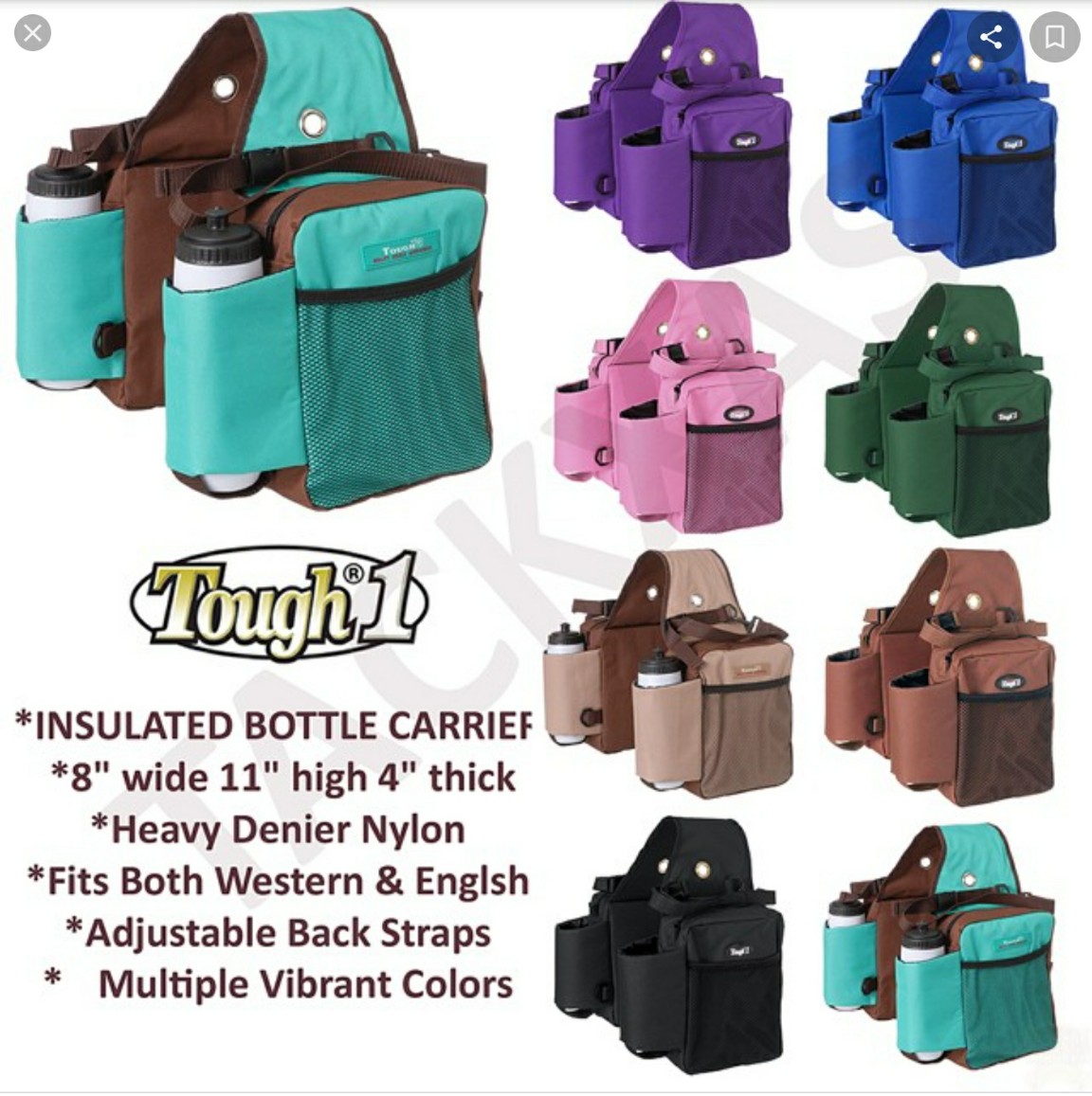 You'll find them online at many of the western riding tack stores that sell horse stuff through the internet. (I have the blue, pink, purple, and black sets. The purple set I used for endurance riding. The blue, pink, and black sets I use for my bikes.) They also come in straight and tooled leather, however those models lack the drink carriers.