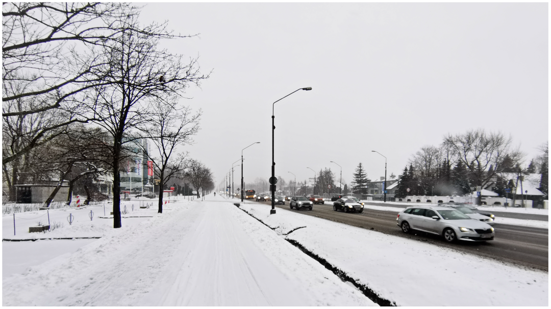 Riding southwards via Jan Rosół Street. There was a small sledging hill at my right hand side (I regret I took no picture!) As you can see, the more southwards you go, the more modern architecture appears.