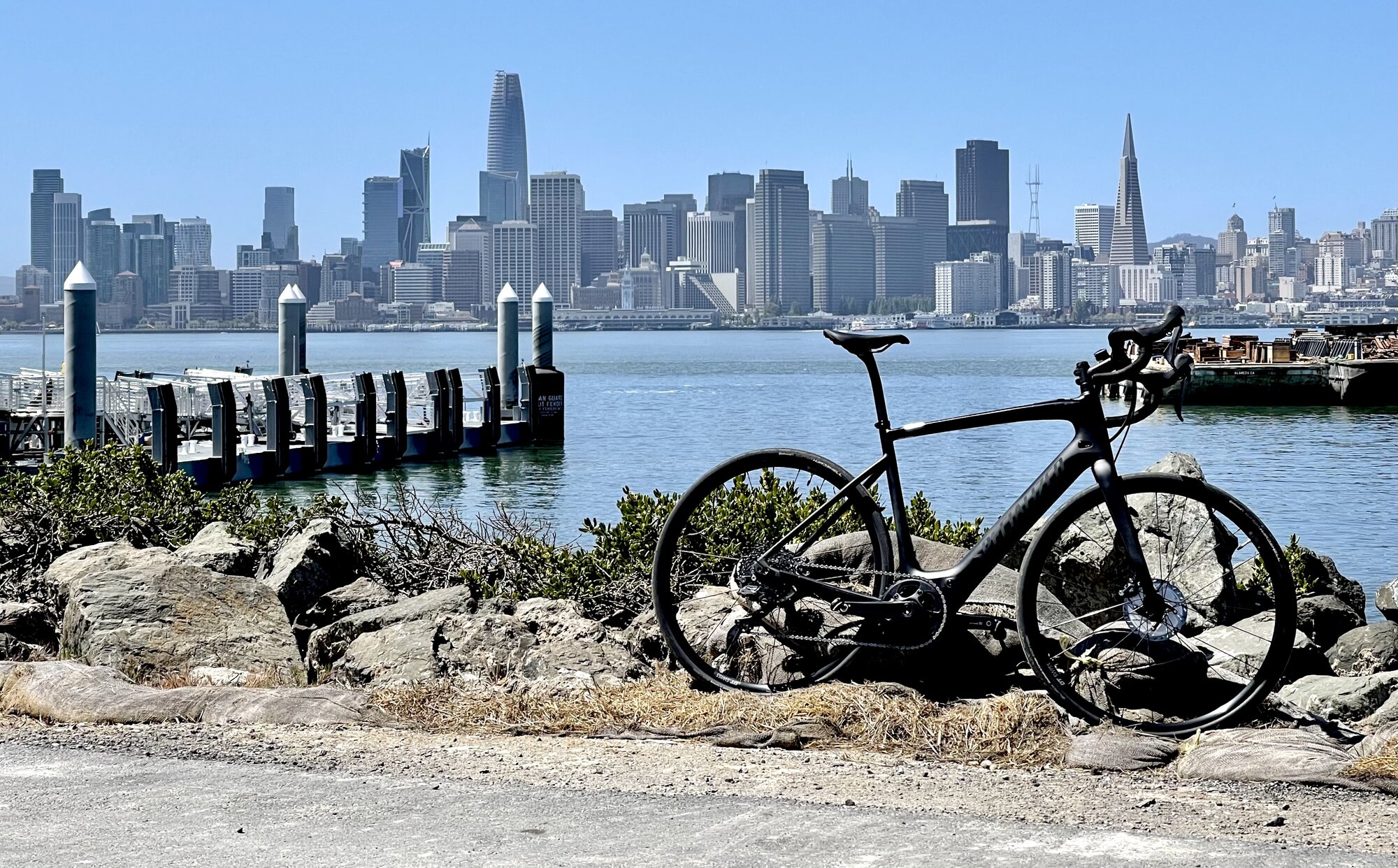 route map shows one small segment (between san francisco and treasure island) which is not bikable, threw the creo on the rack out front of a muni bus!