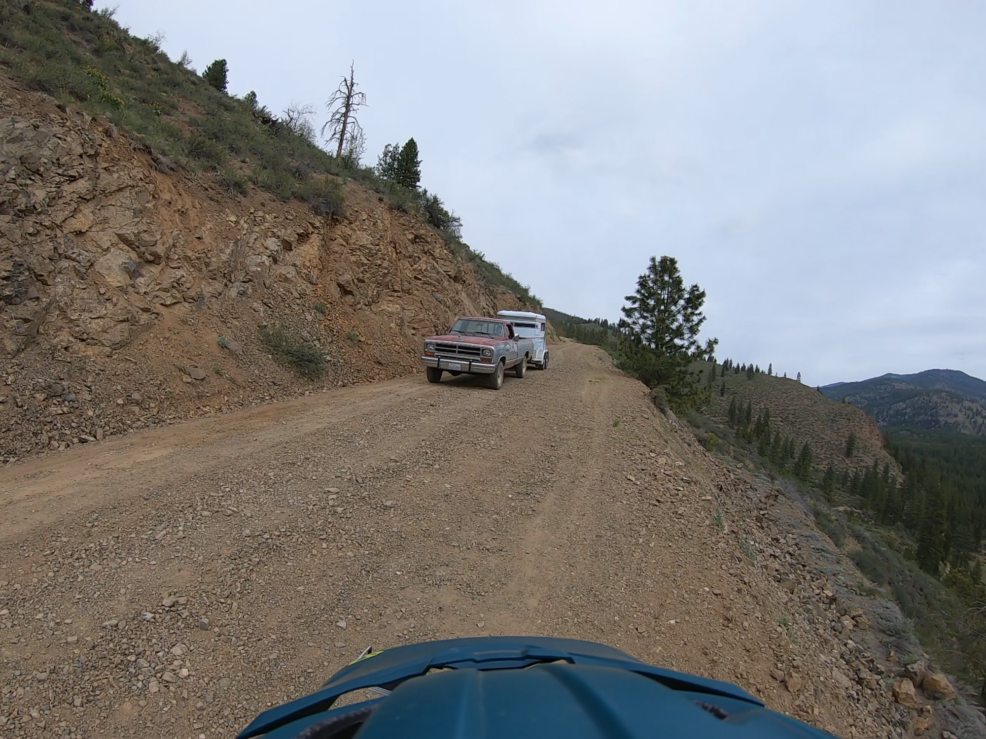 And meeting a rig with a horse trailer on the steepest, roughest, and spookiest section of my road: