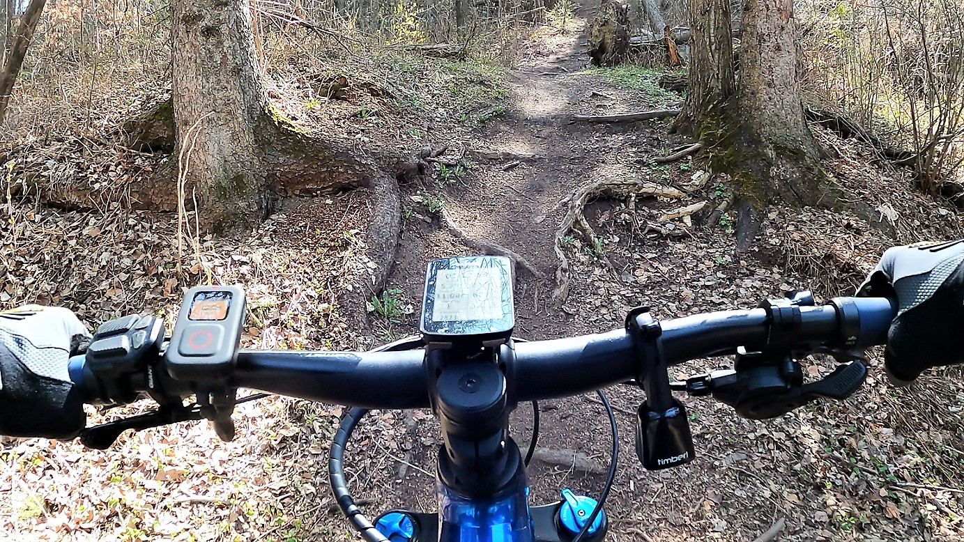 Hmmm…….about that hill, Steve. I took another run at it today and almost made it. Those darn tree roots get me every time!! I had to deploy walk mode once again to assist me up the remaining few feet to the top. In hindsight, I should have taken the root-free line to the right near the crest.