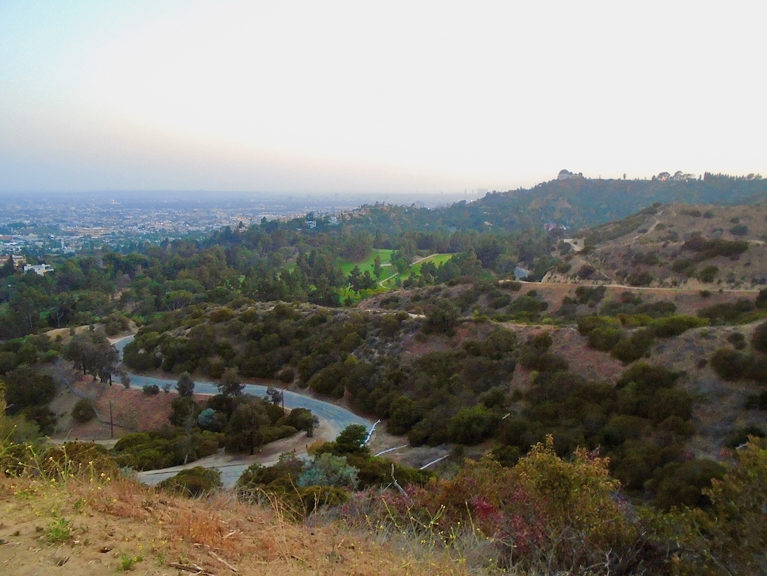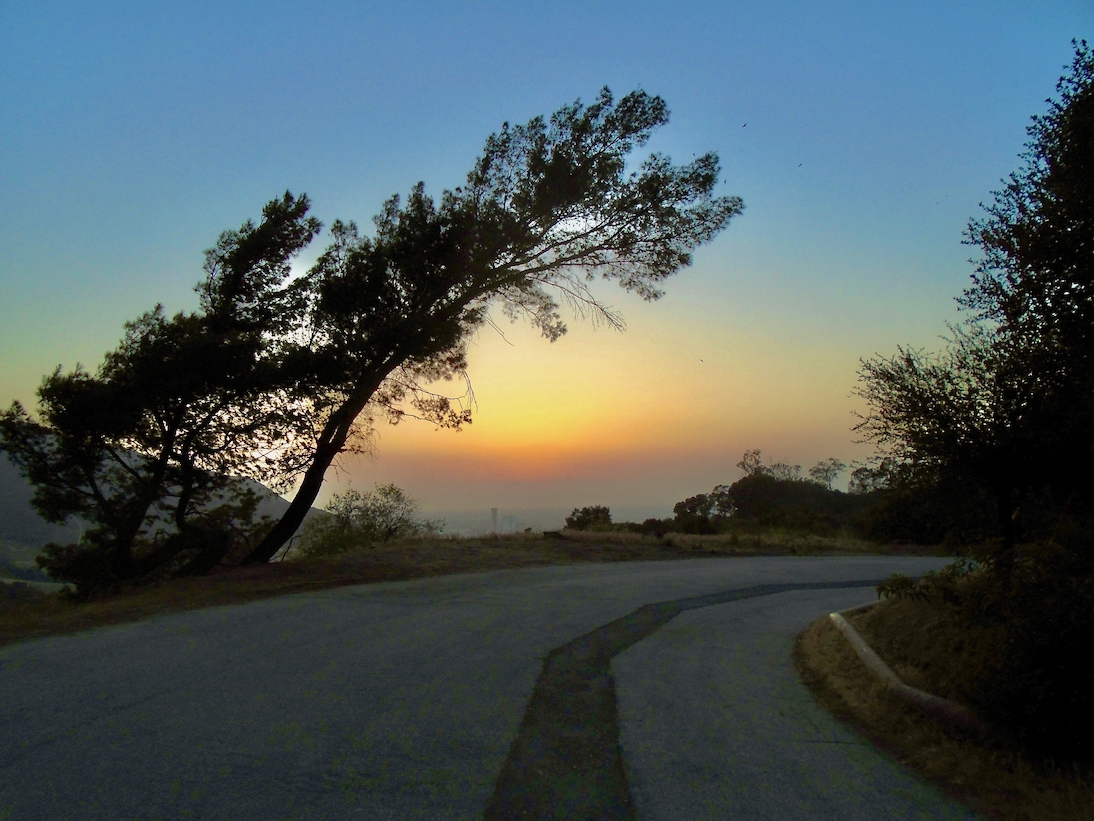 These were taken with a cheap-o Sony DSC-W800 point-and-shoot because it's no worse than my mobile camera, the touch-screen shutter on my mobile drives me crazy and the camera is tiny and weighs nothing. This is one of my favorite windswept trees descending Mt. Hollywood Drive...