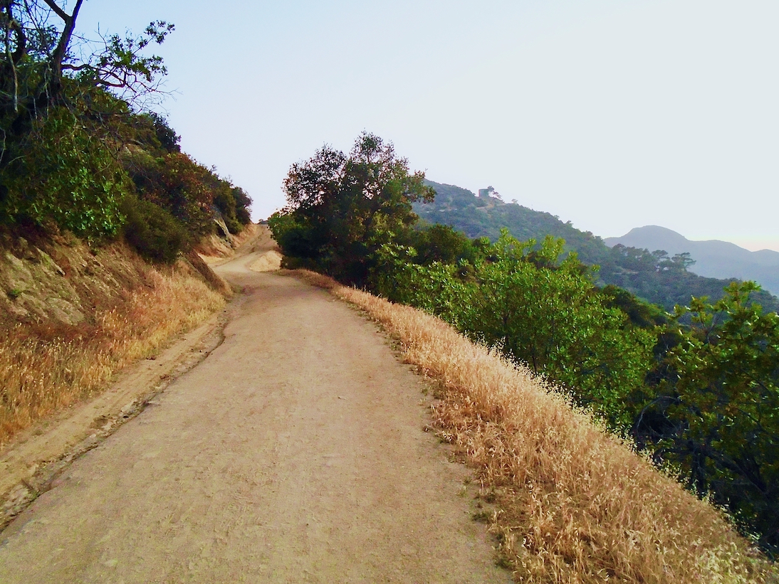 I'd gone about 3.5 miles, descended 200 feet and ascended another 300 when the phone rang again-- the guy could not find the girls. I sighed. I said I couldn't imagine how they made a wrong turn, but would he feel more comfortable if I turned around and went back and hunted for them? (Car traffic isn't allowed on Vista del Valle, and it made more sense for him to stay at the rendezvous point.) He apologized and said that yes, he would appreciate it if I did that. So I turned around, rode back, and we played phone tag until he called to let me know that he'd found them a few hundred feet down the road. Phew!