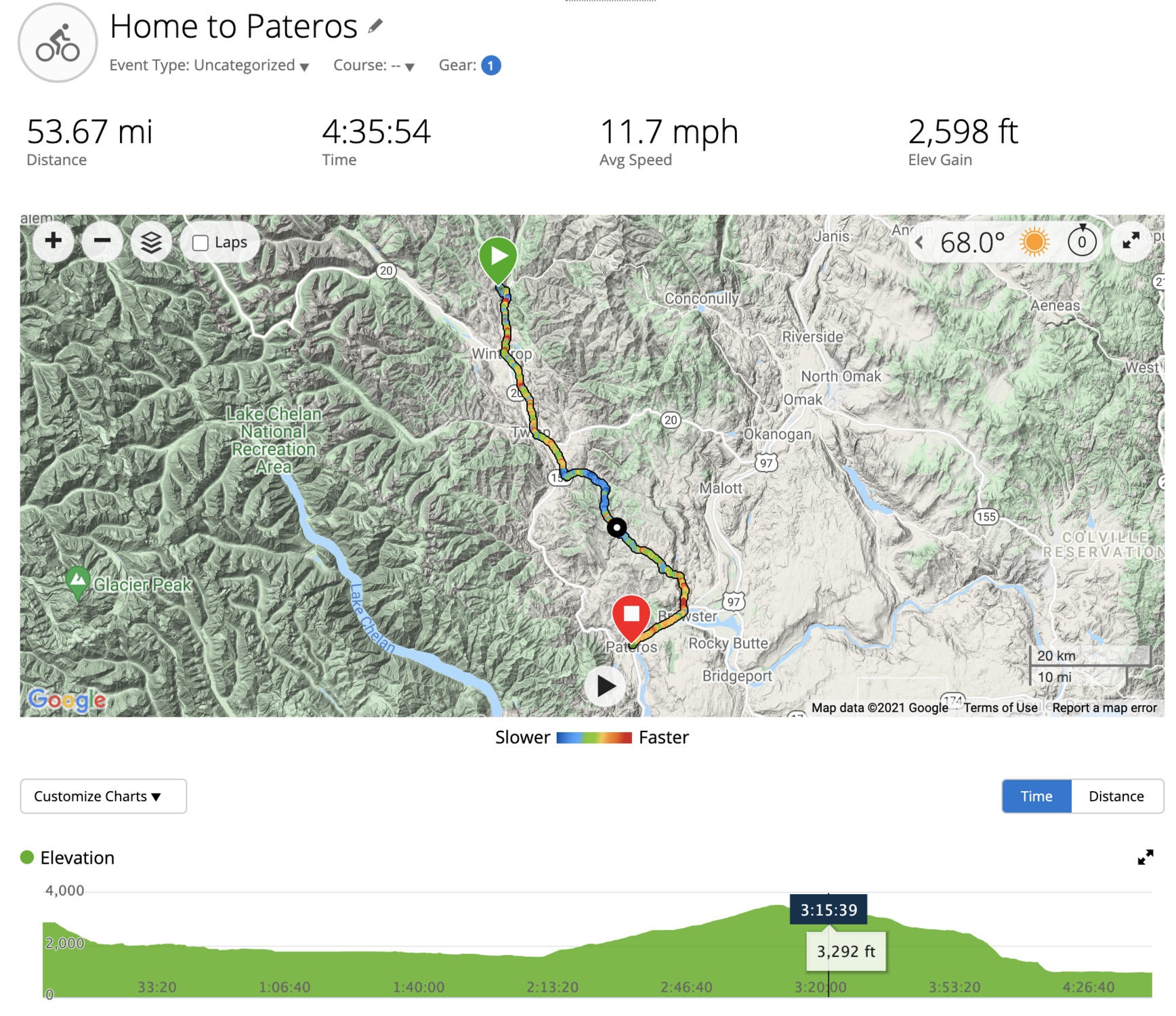 I had packed my 500w second battery with me since I wasn't sure if my 606w battery would be enough for the distance with the hills. But since the initial 10 miles was essentially downhill, I was able to cuise easily in the Vado's eco mode, saving electrons. I suppose it was just my opinion, certainly not a fact, but it felt like most of the ride was downhill with very few uphills. I have gotten less self-conscious at passing other riders going up hills, and now just politely announce I was passing on the left and no longer added a self-effacing apology. I just laugh now when I hear a rider call out that they want my bike.
