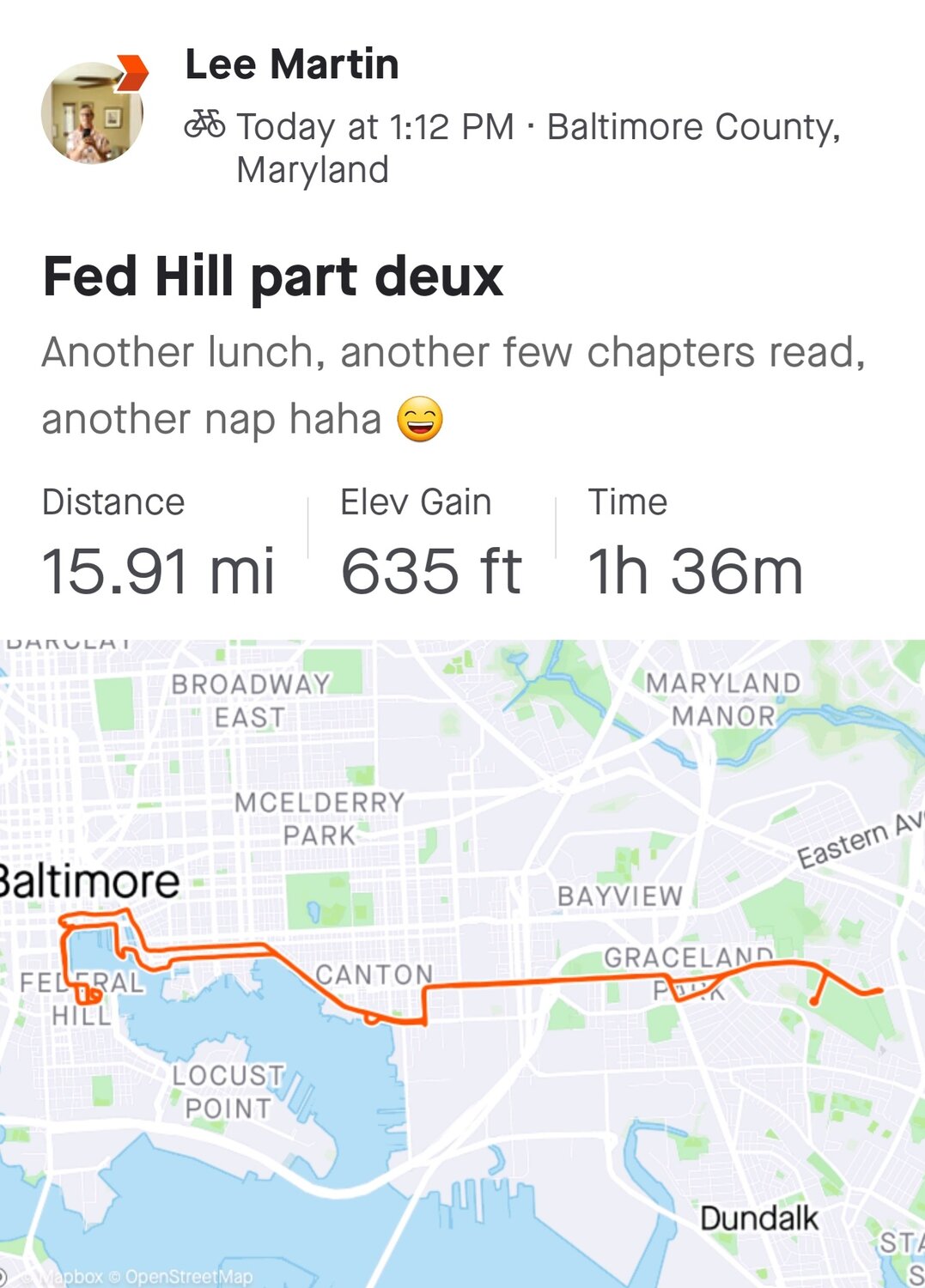 I finally made it to Brand Park! WHAT a cool place! Strava closed out on me when I went to another app that used GPS-- I had to go to Google Maps to navigate the trails. Bummer, there's probably a work-around for that. Approximate stats from Maps and/or cycle computer:
