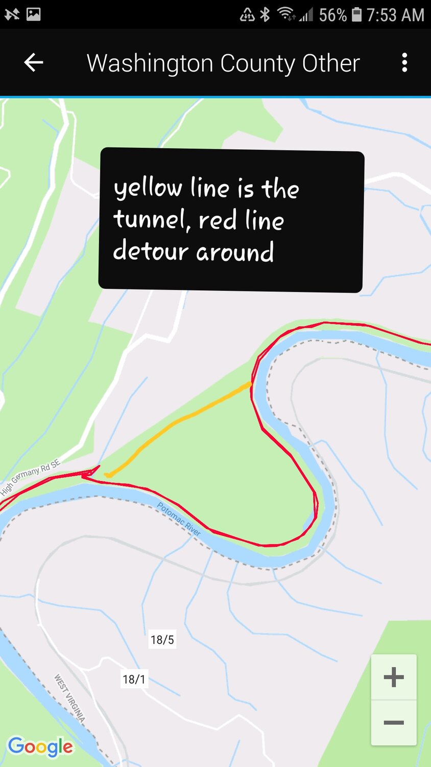 If you ride the entire WMRT, including the new section to Little Orleans, you automatically get to do a 2 1/4 mile stretch of the C&O around Indigo Neck. The WMRT detours to the C&O to get around the closed Indigo Tunnel.