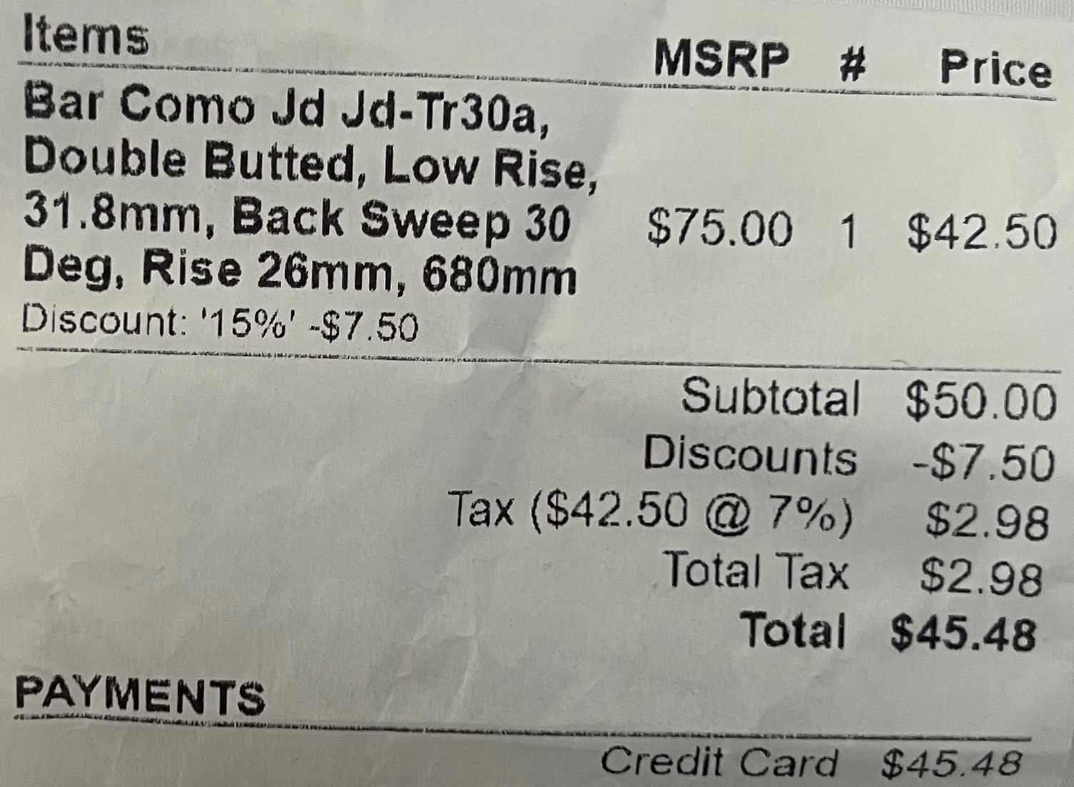 Specialized that I ordered from a local bike shop that carries Specialized bicycles. The Specialized handlebar spec is: 30-degree backsweep, 26mm rise, 680mm width, 31.8mm stem diameter, 22.2 grip diameter. If you search this forum for "Como handlebar", you should get some hits on past discussions about this handlebar. The Specialized handlebar will work with everything that's on the standard Current handlebar and the cables will reach. Only tweak I had to make while swapping to this handlebar was to use a small cable tie to relieve some slight strain on the two cables that go into the Enviolo shifter.